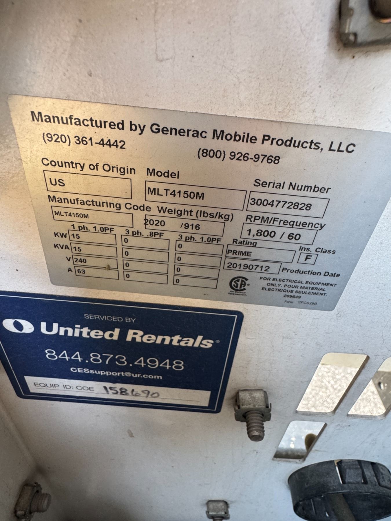 2015 GMP MLT30 LIGHTING TOWER AND GENERATOR , VIN 5AJS1417FB509869., *****LOCATION: 8585 CAVENDISH**