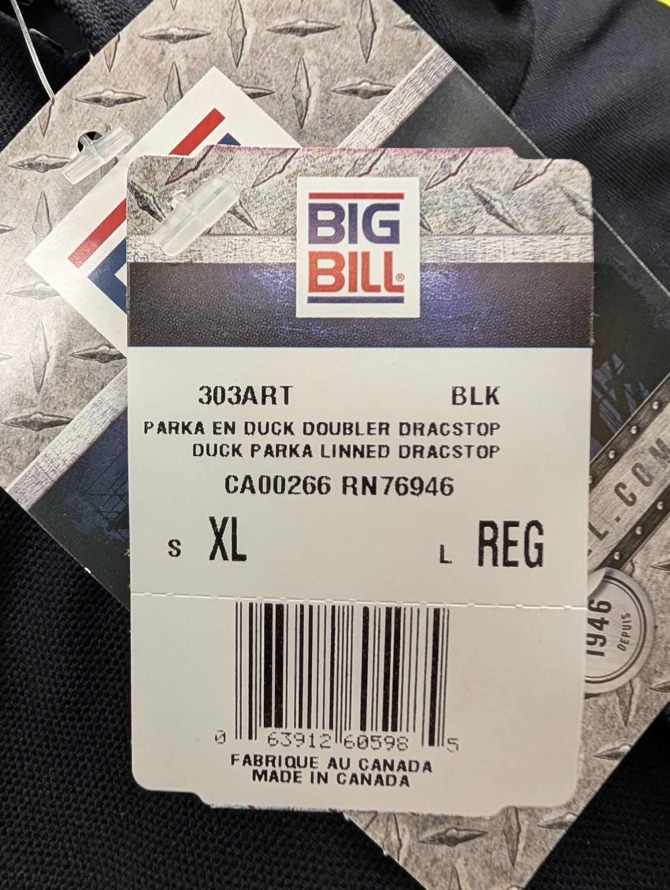 BIG BILL MANTEAU IFR H.V. WORKWEAR gr: MED val:$550