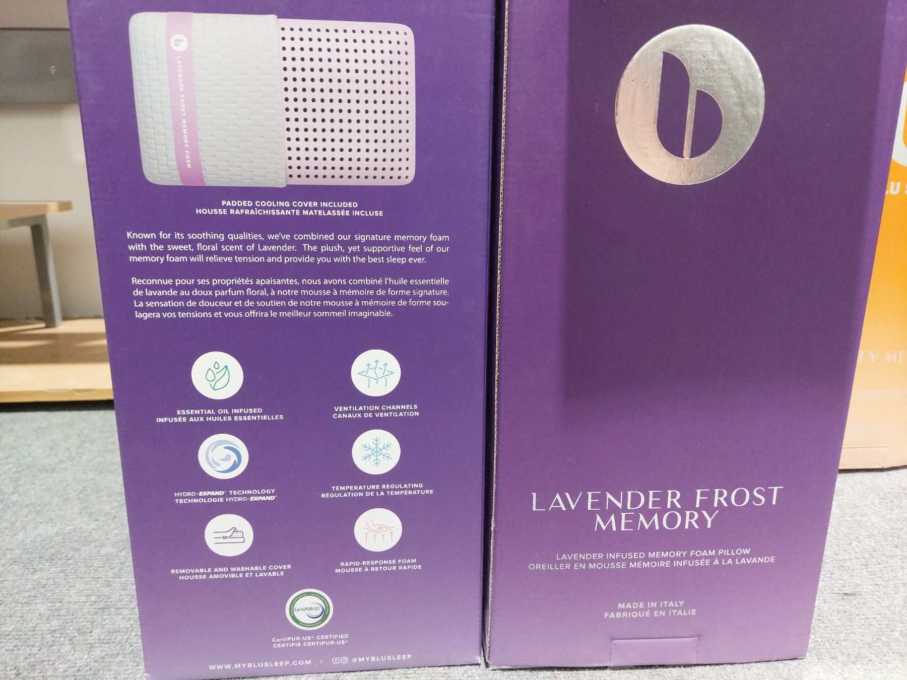 BLU SLEEP LAVENDER-INFUSED MEMORY FOAM PILLOW, SIZE 28.5"X16.5"X6"