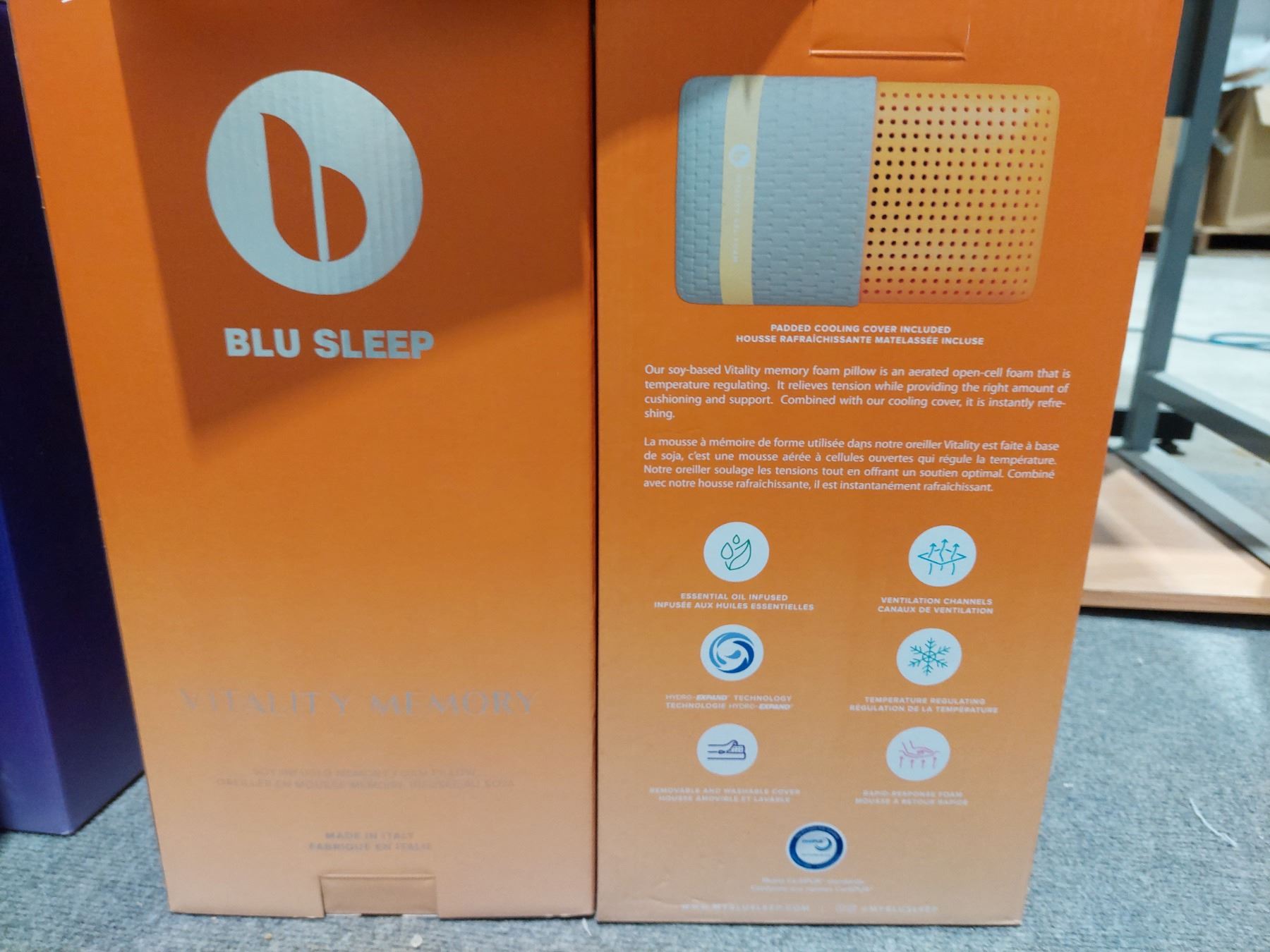OREILLER MOUSSE MEMOIRE INFUSÉ À SOJA BLU SLEEP gr:35.5"x16.5"x5.5"