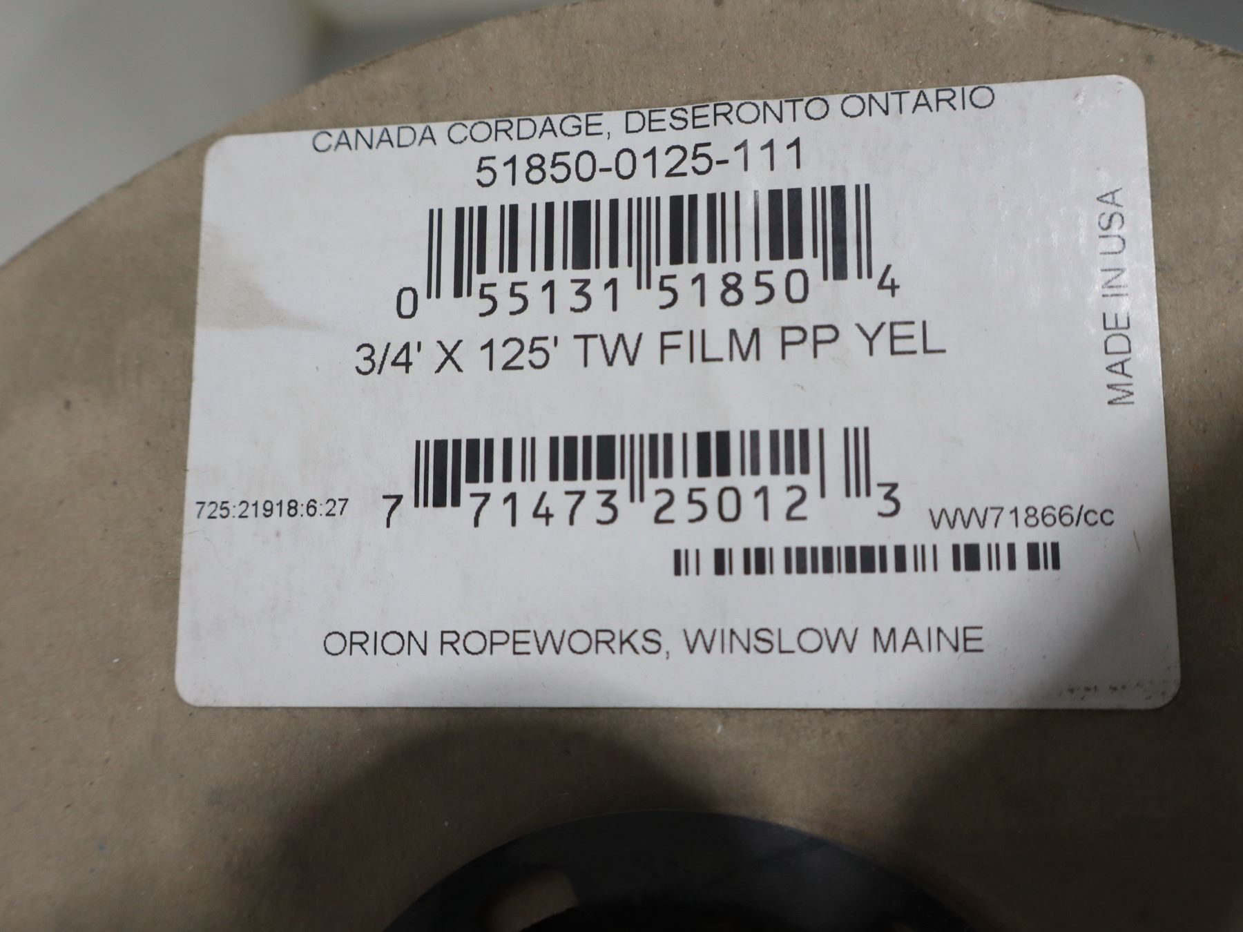 BOBINE DE CORDE 3/4"x125'