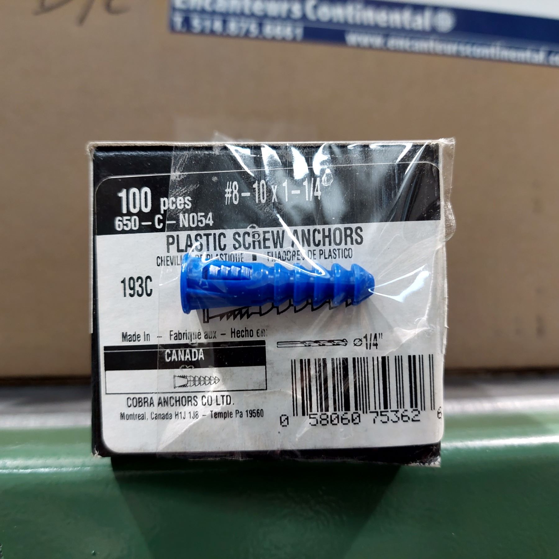 BOITE DE 100 CHEVILLES EN PLASTIQUE #8-10 X 1-1/4" COBRA