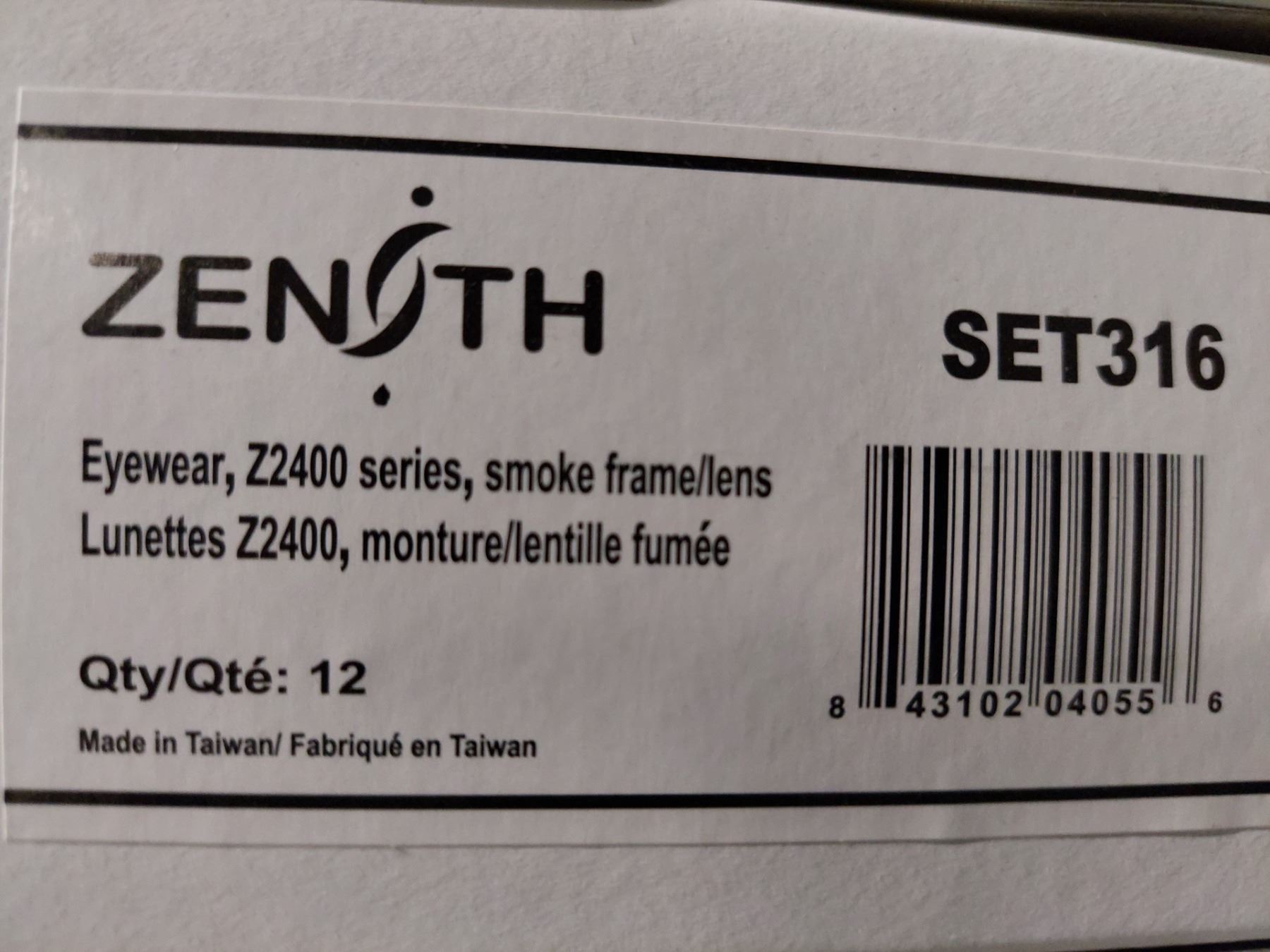 BOITE DE 12 LUNETTES DE SÉCURITÉ Z2400 SET316 ZENITH