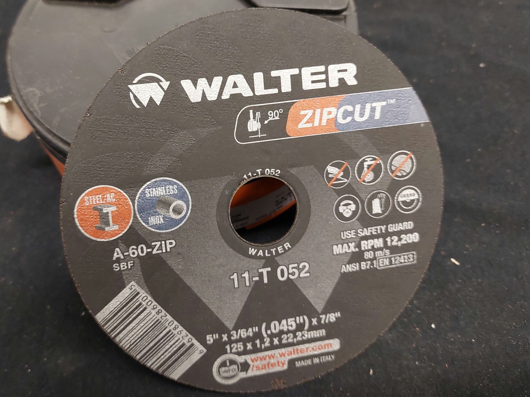 BOITE DE 25 DISQUE À TRONÇONNER ACIER + INOX WALTER 5" X 3/64" X 7/8"