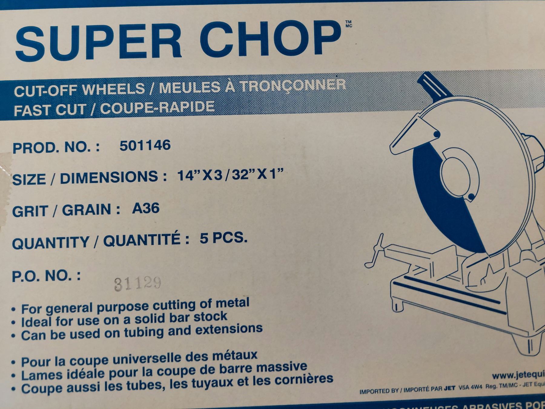 BOITE DE 5 DISQUE STAINLESS/INOX 14" X 3/32" X 1" SUPER S400