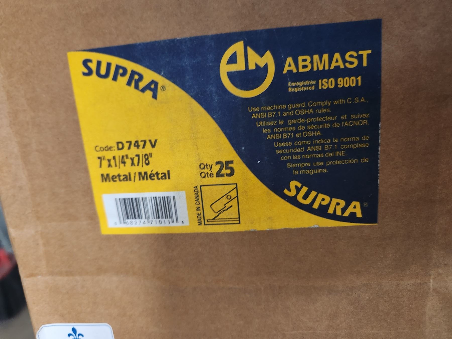 BTE/25 DISQUES POUR MÉTAL 7" X 1/4" X 7/8" SUPRA