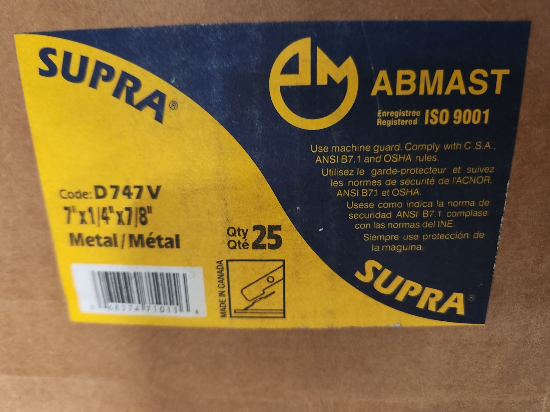 BTE/25 DISQUES POUR MÉTAL 7" X 1/4" X 7/8" SUPRA