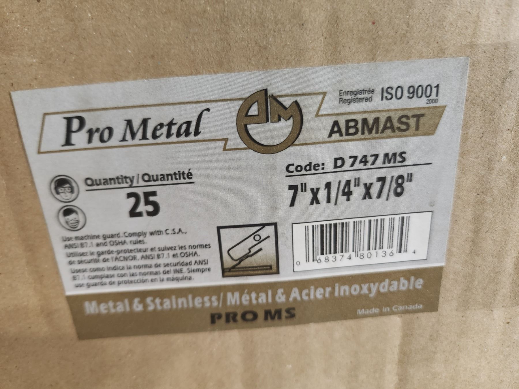 BTE/25 DISQUES POUR MÉTAL ET STAINLESS 7" X 1/4" X 7/8" ABMAST