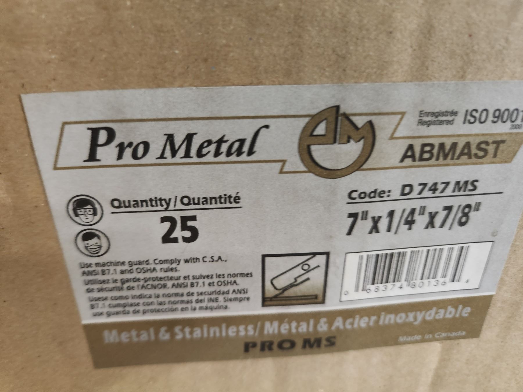 BTE/25 DISQUES POUR MÉTAL ET STAINLESS 7" X 1/4" X 7/8" ABMAST
