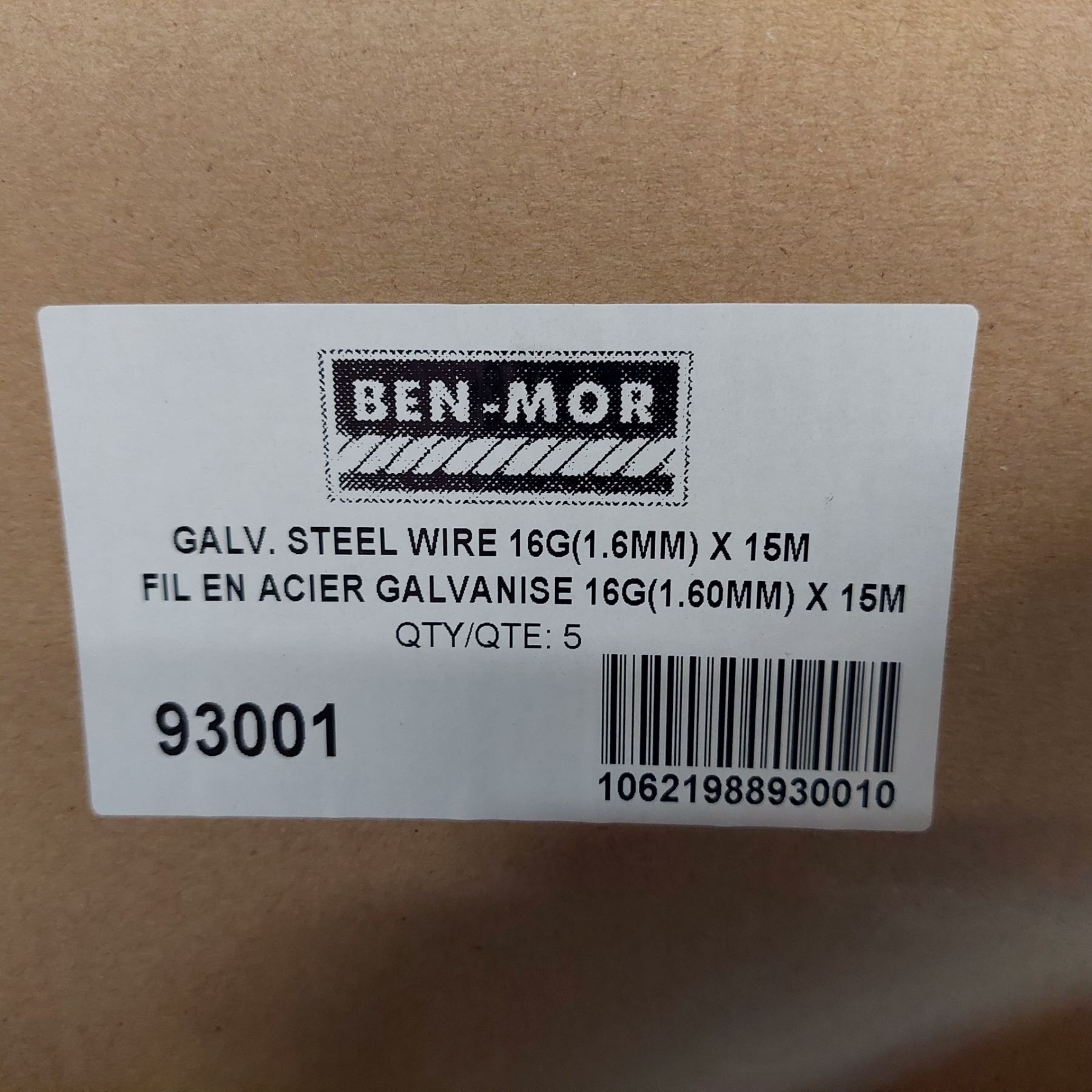 BTE/5 FILS EN ACIER GALVANISÉ 16 GA (10 MM X 15 M) BEN-MOR