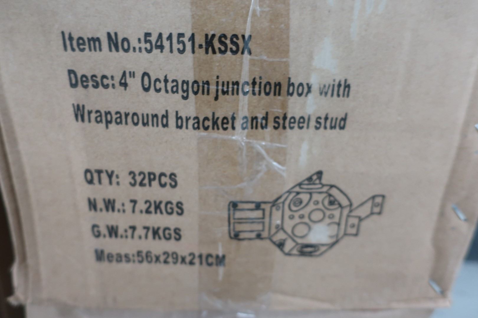 BOX OF 32pcs 4" OCTOGON JUNCTION BOX WITH WRAPAROUND BRACKET AND STEEL STUD #54151-KSSX
