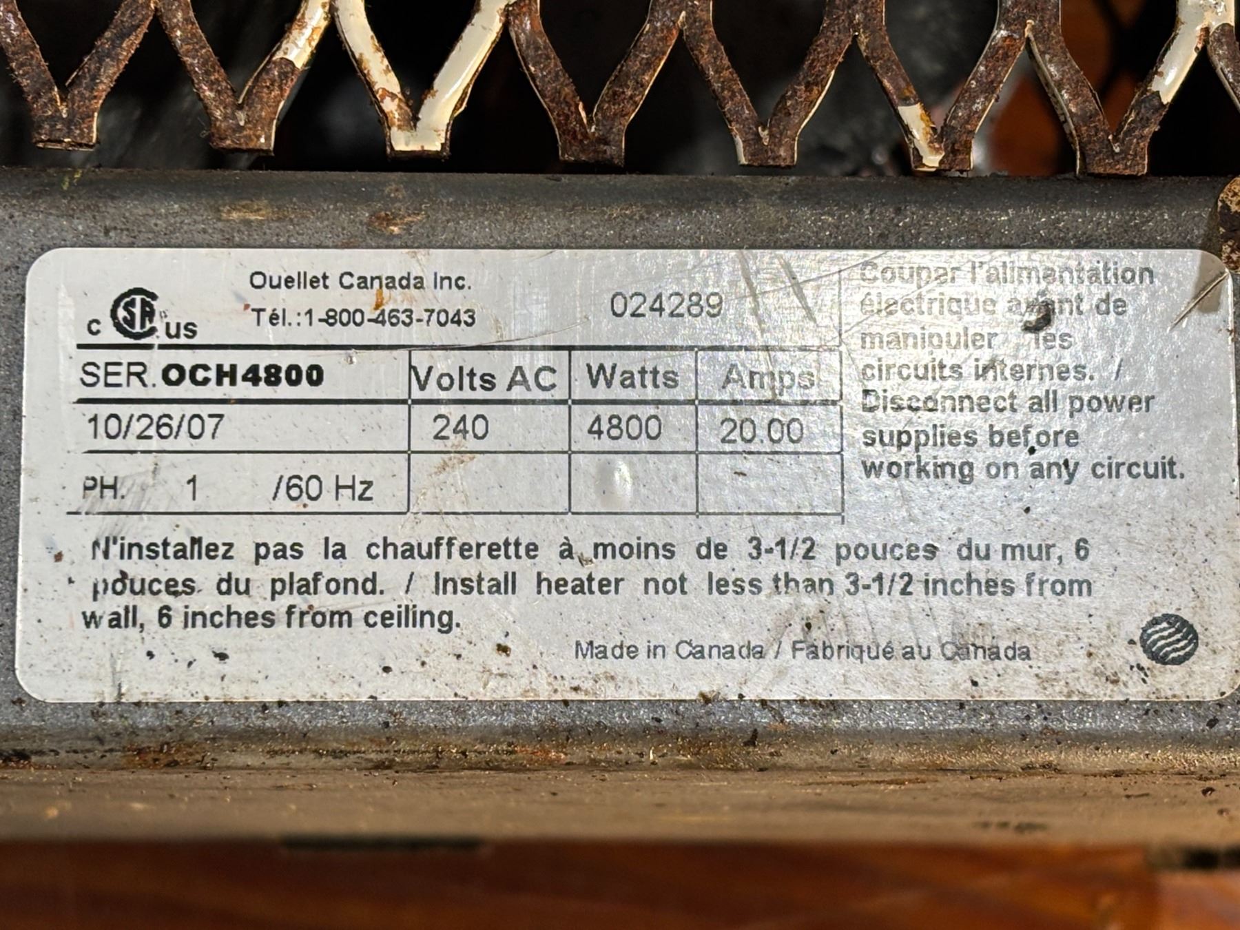 OUELETTE #OCH4800 HEATER