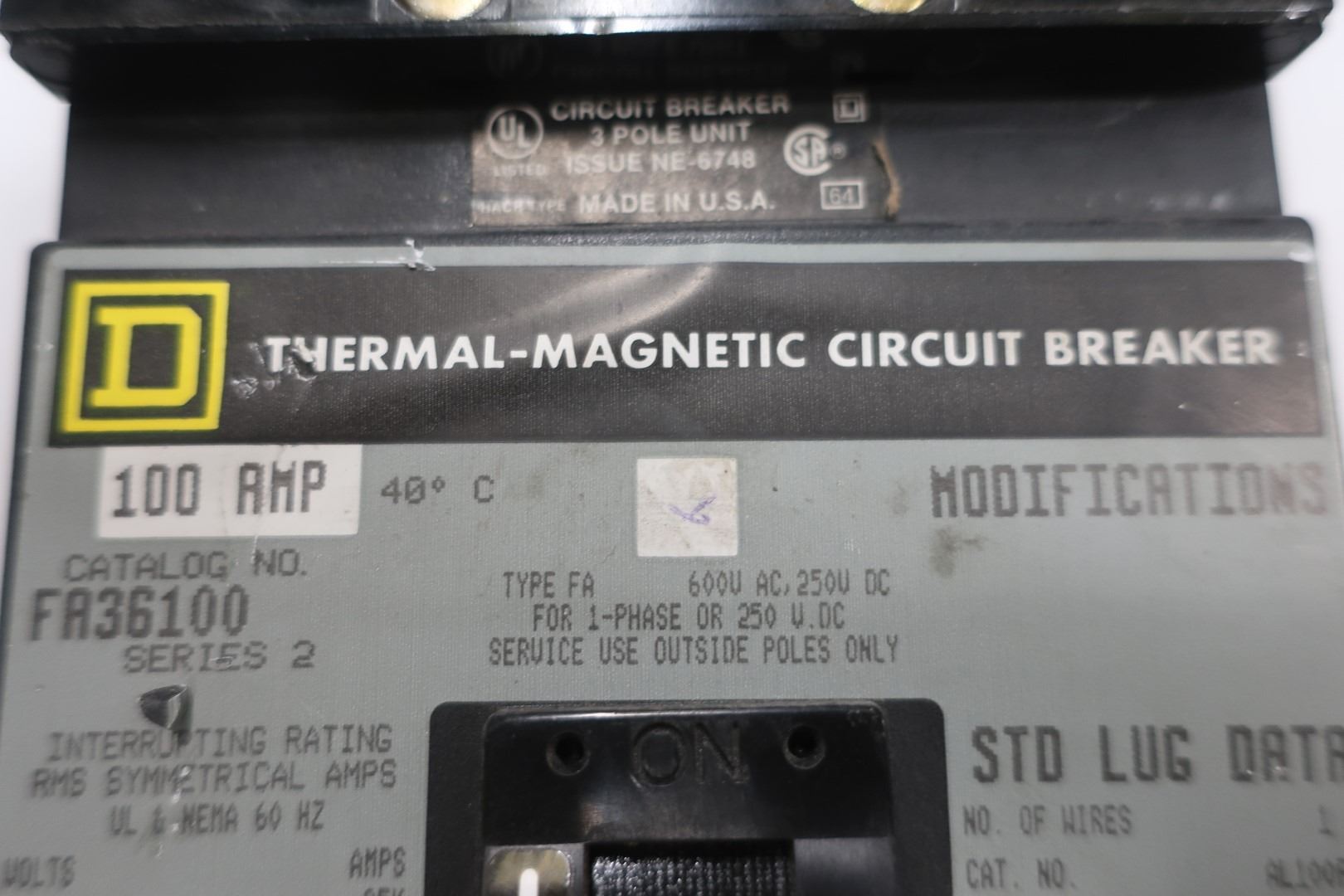 CIRCUIT BREAKER SQUARE D 100a, 3 POLE
