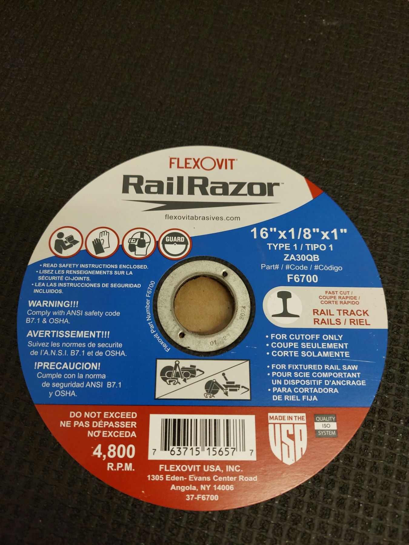 DISQUE MÉTAL RAILKREX 16" X 1/8" X 1" POUR RAILTRACK