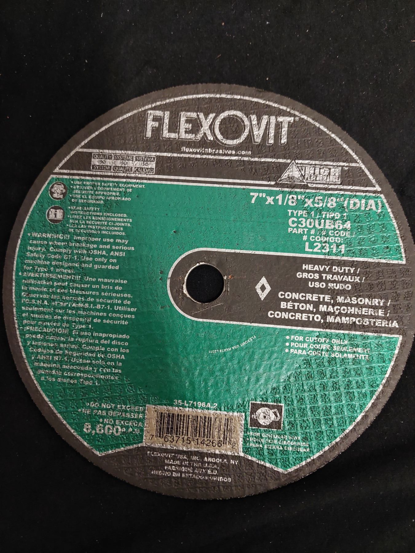 DISQUE POUR MÉTAL 9" X 1/8" X 5/8" (DIA)