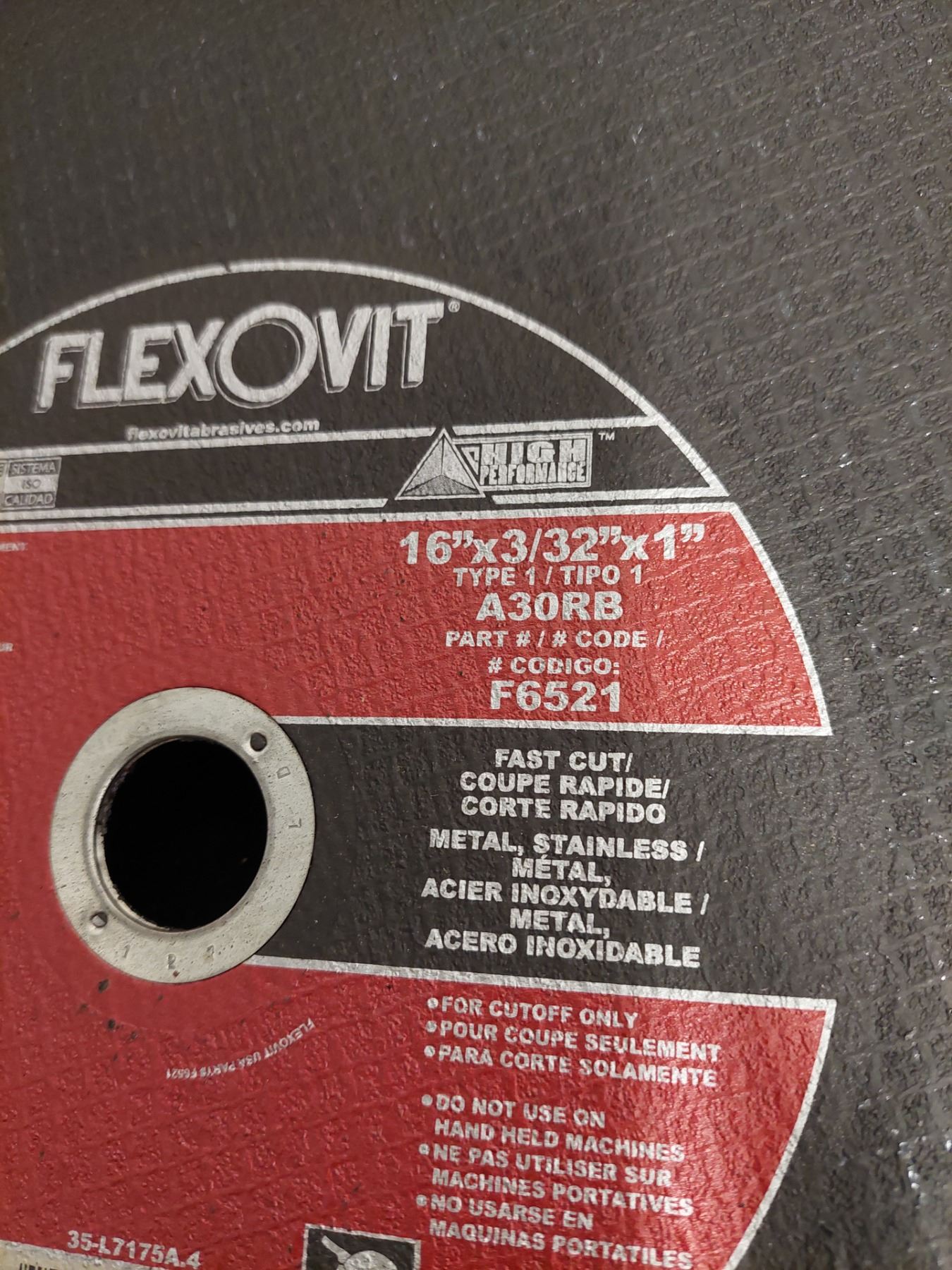 DISQUE POUR MÉTAL FLEXOVIT 16" X 3/32" X 1" COUPE RAPIDE