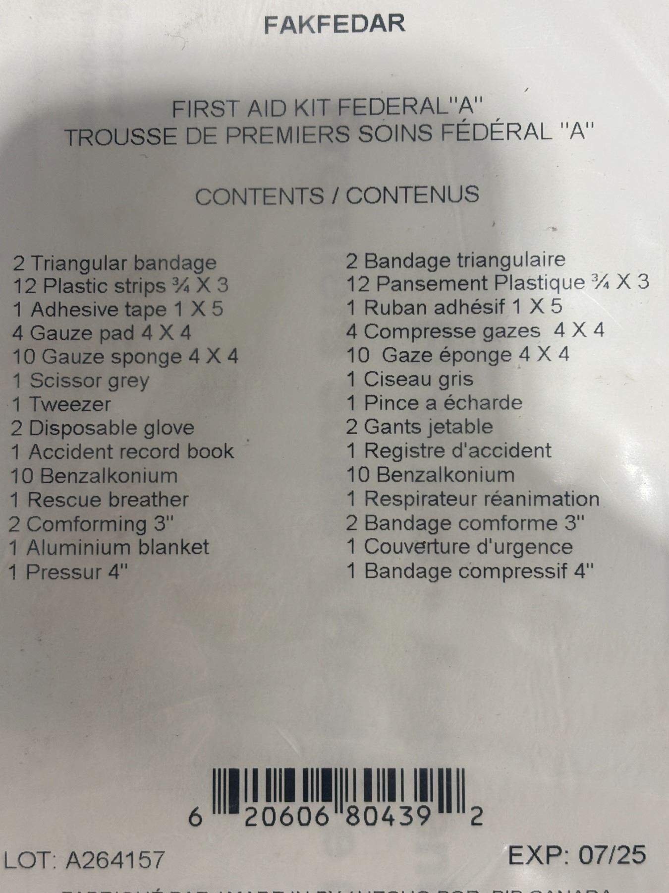 DYNAMIC PIP 1ST AID REFILL FAKFEDAR FEDERAL "A"