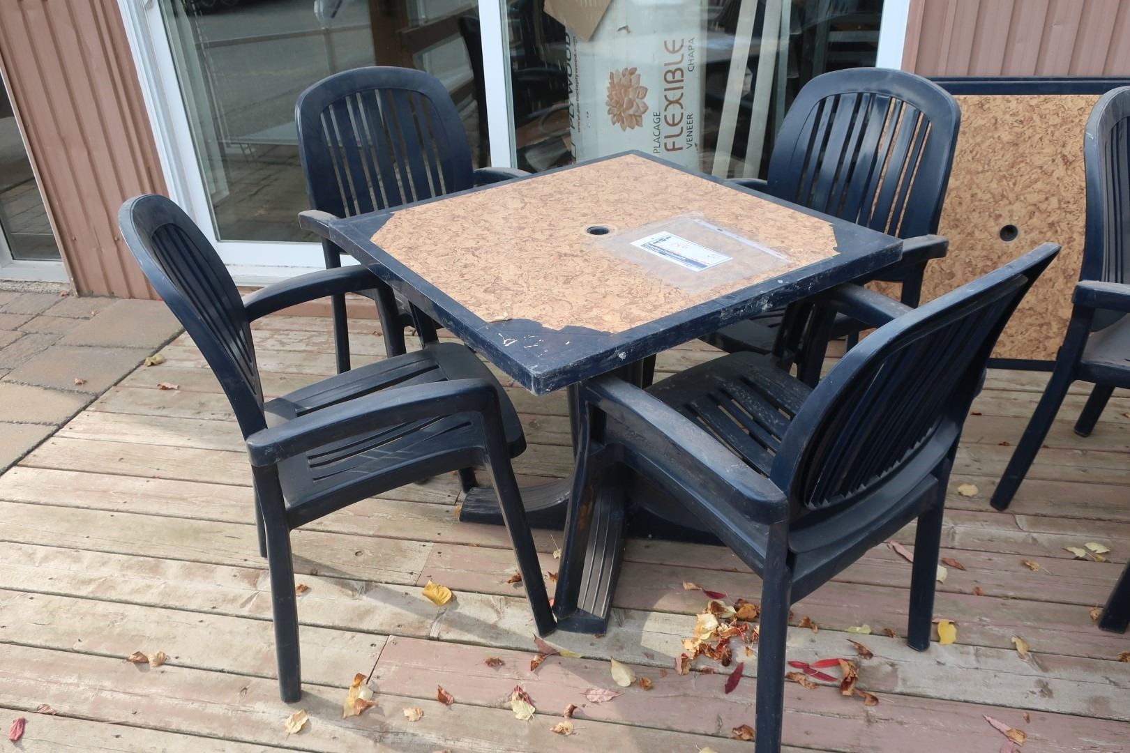 ENS: TABLE PLASTIQUE A/4-CHAISES PLASTIQUE D'EXTIRIEUR