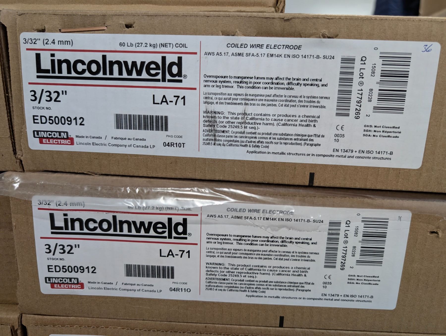 FILS À SOUDER LINCOLNWELD LA-71 3/32  60LBS LINCOLN ELECTRIC #ED500912 val:$300
