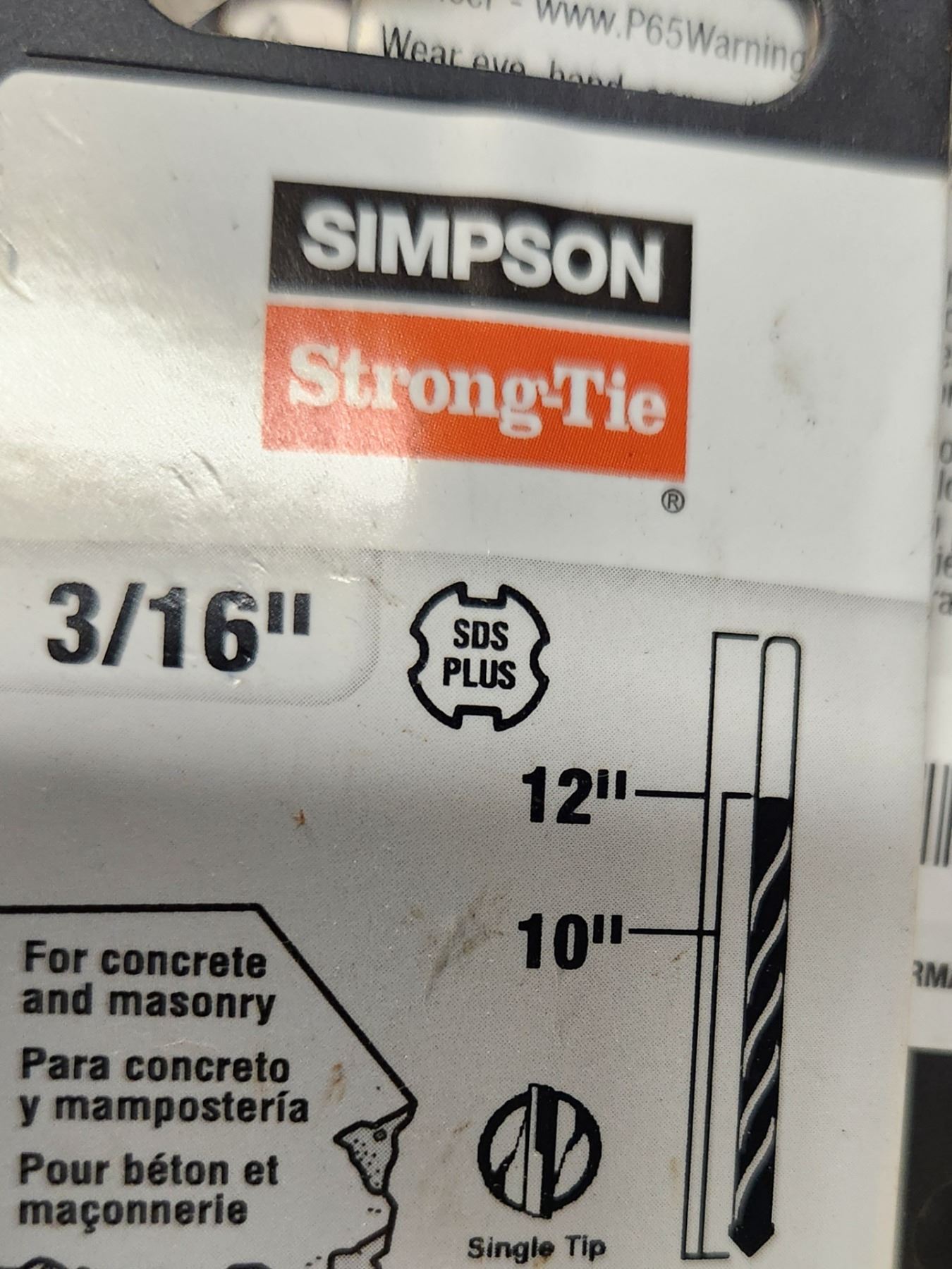 FORETS BÉTON/MAÇONNERIE 3/16" X 12"-10 SIMPSON