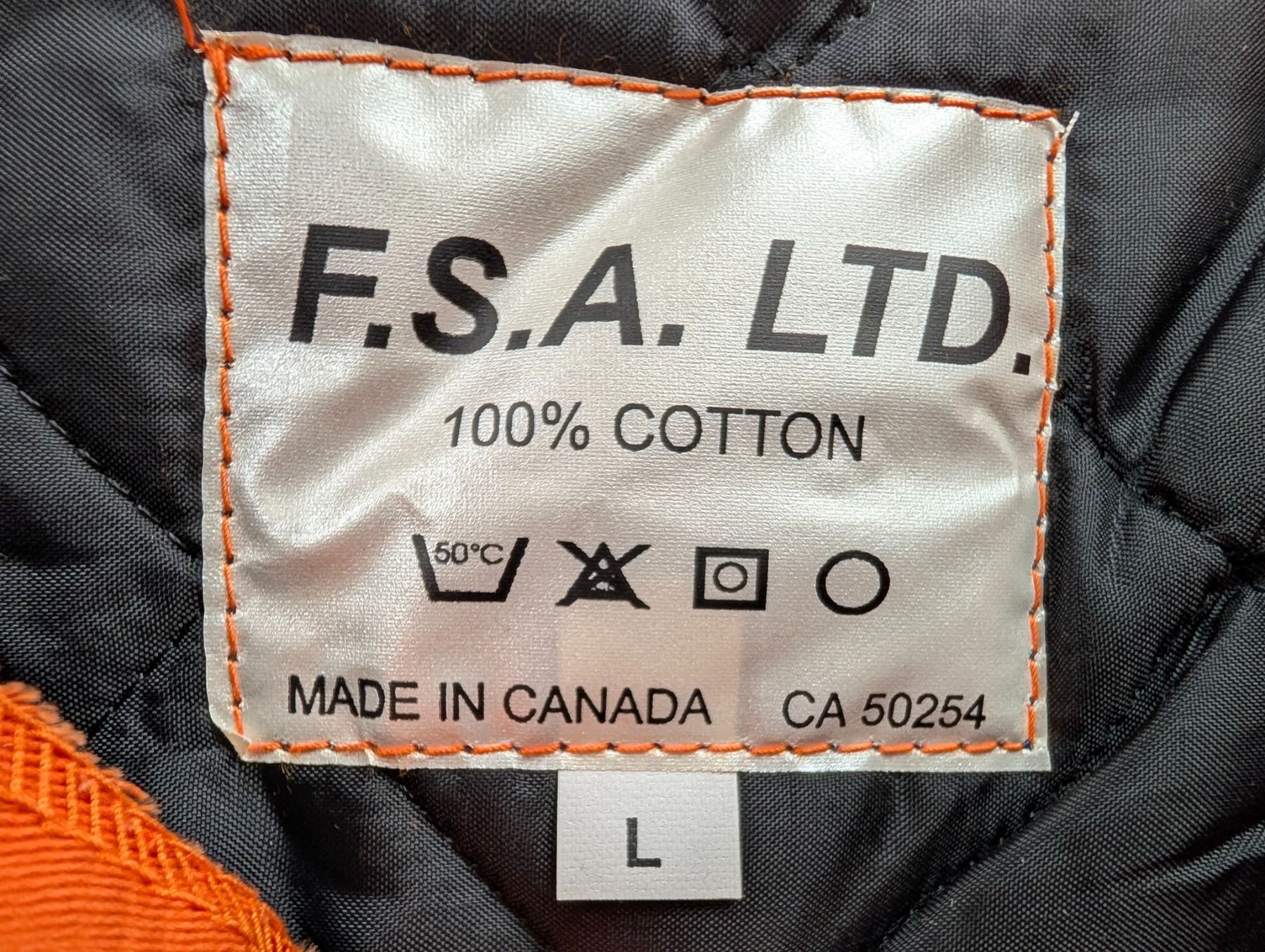 FSA ISOLÉ COMBINAISON ORG H.V. W/REF gr: LRG val:$270