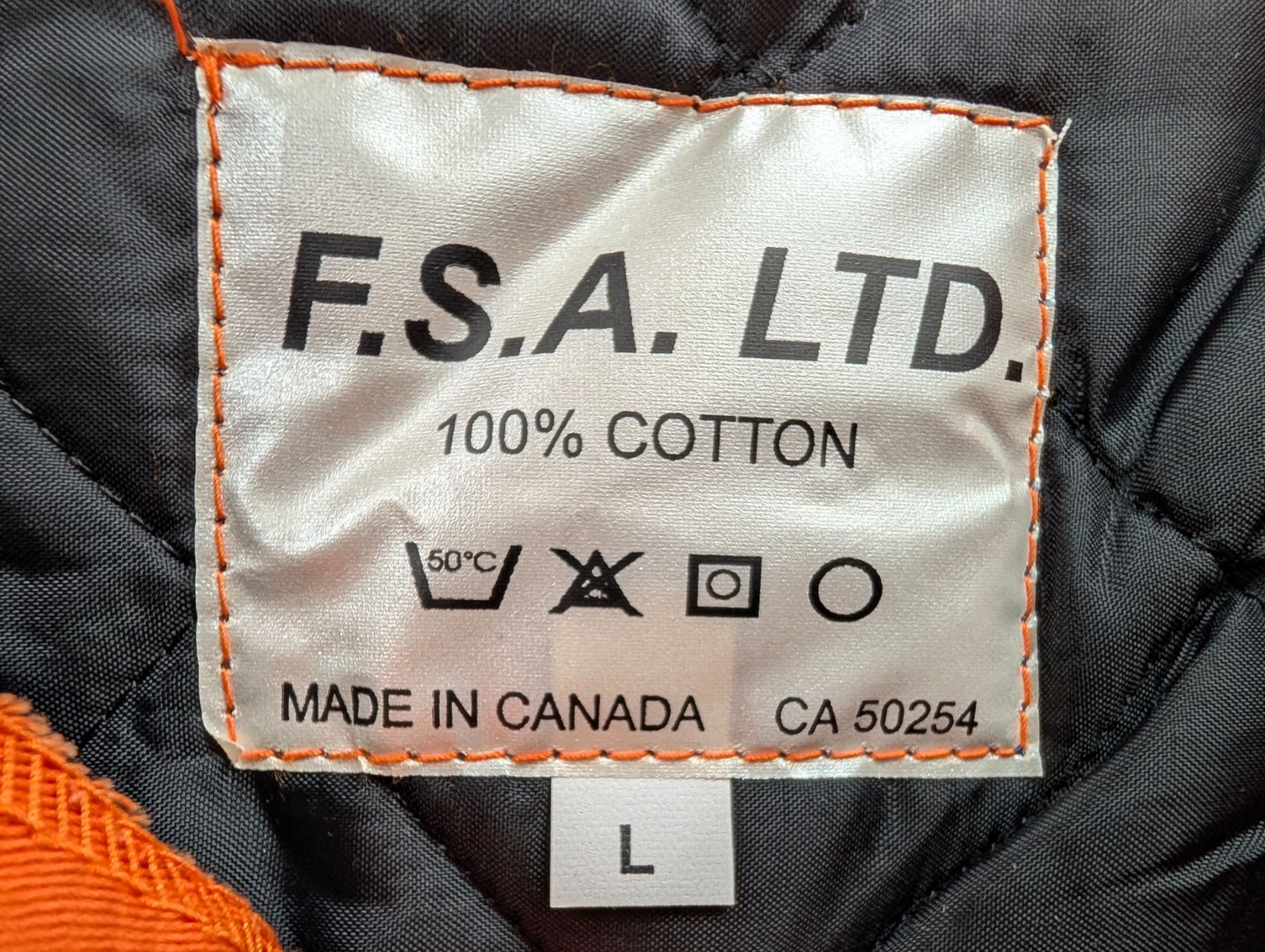 FSA ISOLÉ COMBINAISON ORG H.V. W/REF gr: LRG val:$270