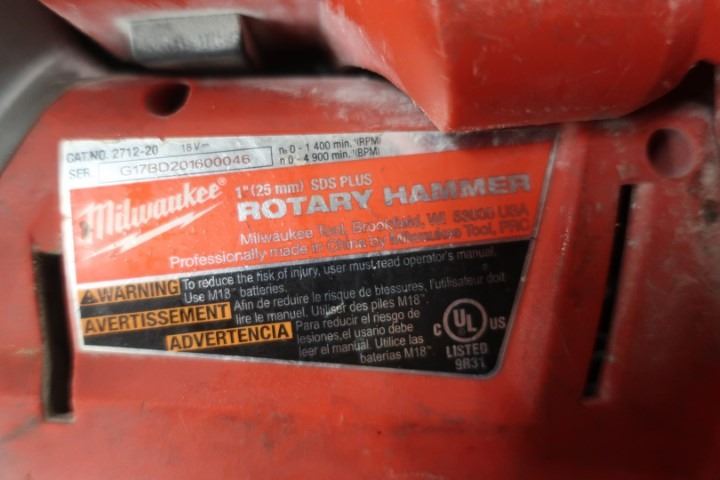 MILWAUKEE 1-1/8" SDS PLUS ROTARY HAMMER 2712-22DE