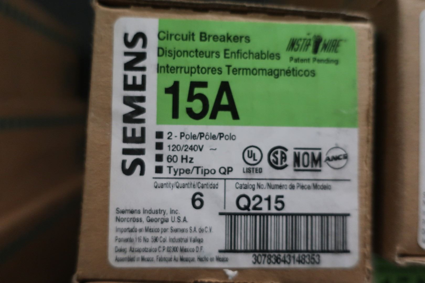 SIEMENS 15 A 2 POLE CIRCUIT BREAKER MOD. Q215