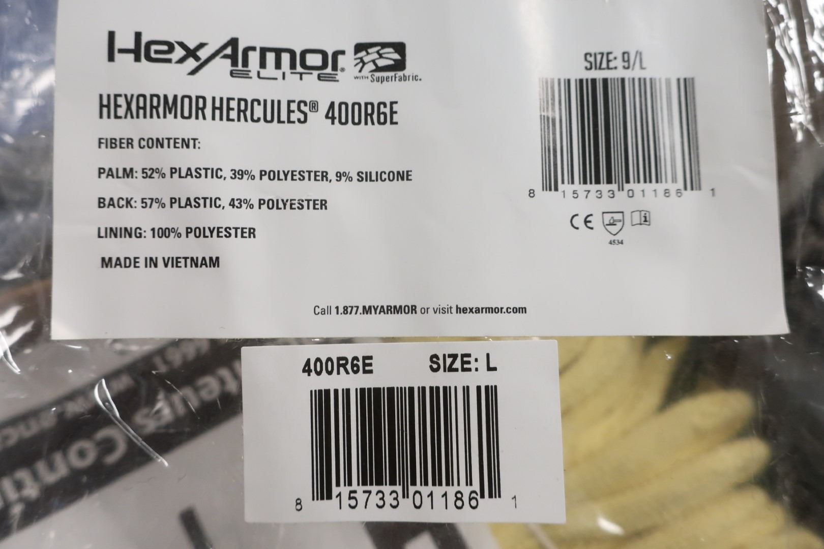 GANTS HERCULES 400R6E, TAILLE LARGE/9, ENVELOPPE EN SUPERFABRIC, ANSI/ISEA 105 NIVEAU 5