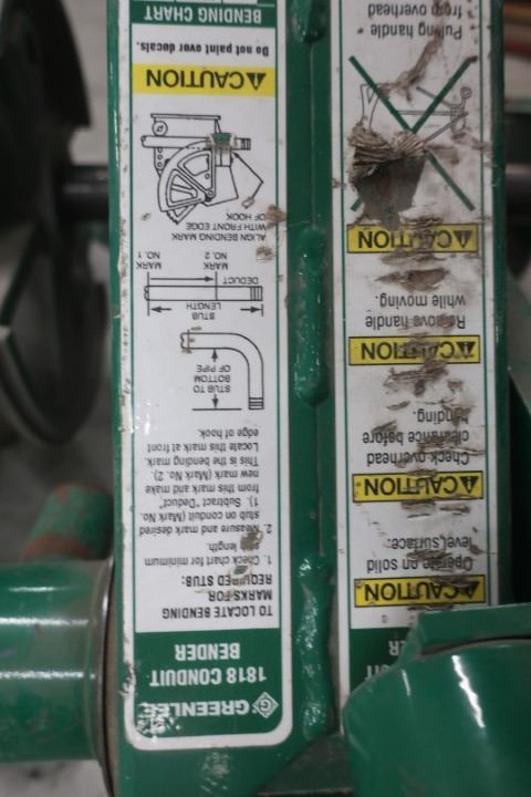 GREENLEE 1818 BENDER 1/2@11/2IN RIG3/4@2IN EMT