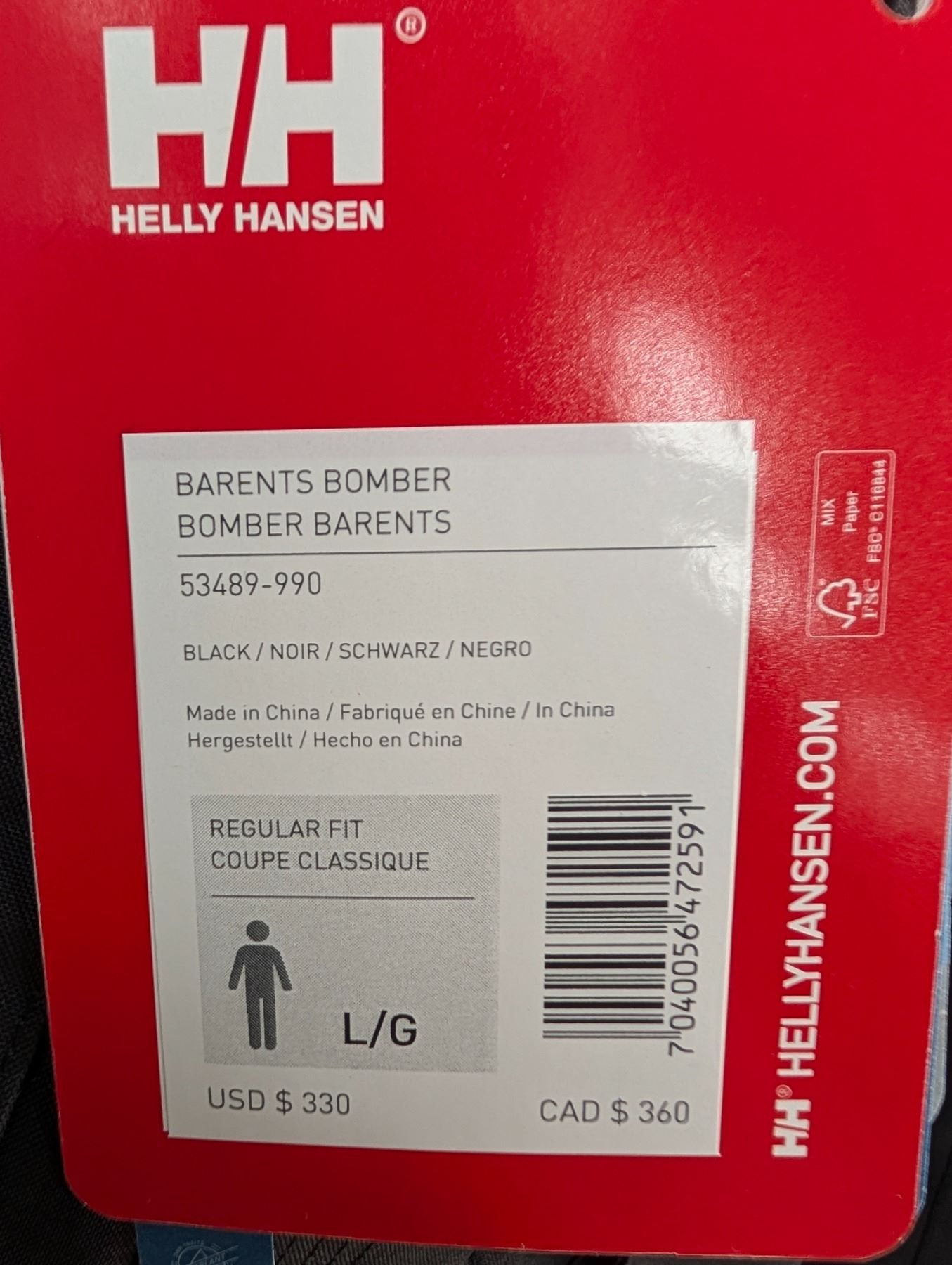 HELLY HANSEN BOMBER BARENTS  gr:LRG val:$350