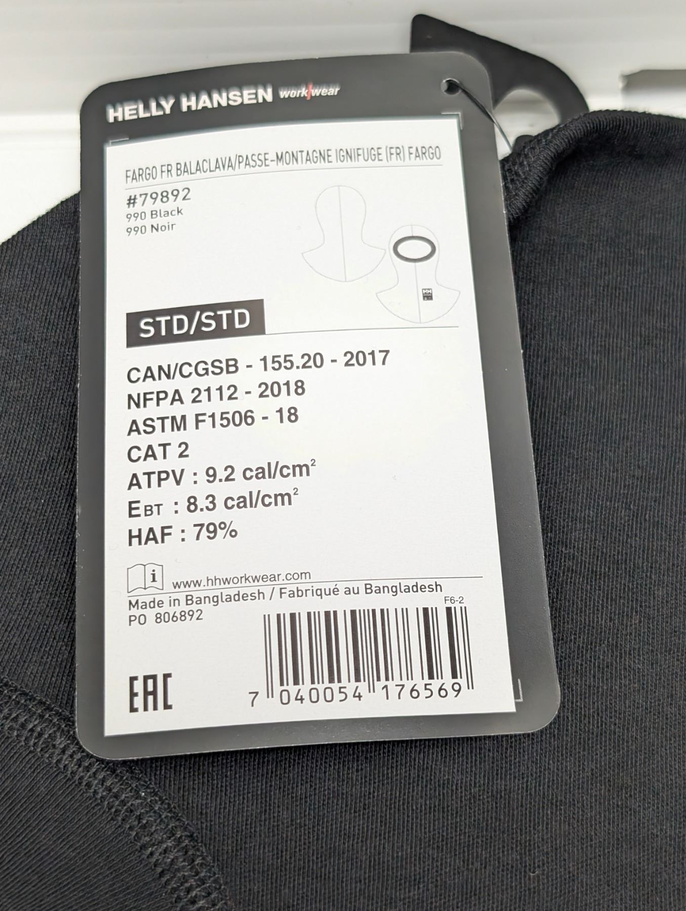 HELLY HANSEN CAGOULE IGNIFUGE -NOIR val:$50