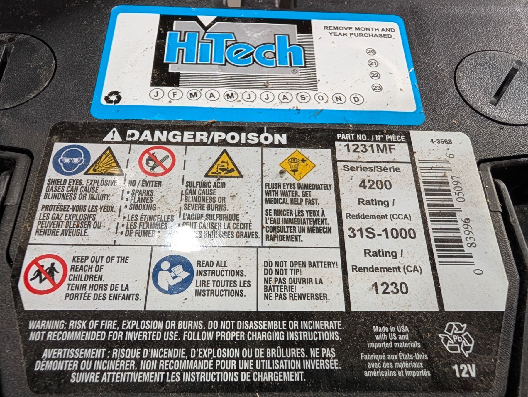HITECH BATTERY #1231MF 4200 SERIES 41S-1000