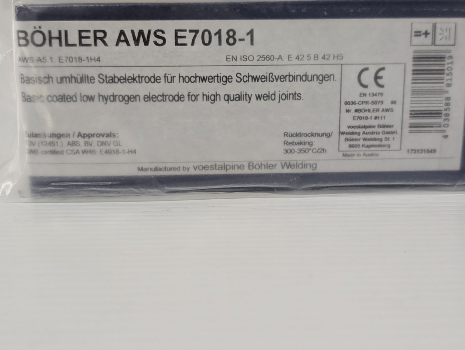 ÉLECTRODES BOHLER AWS E7018-1   1/8 x 13.8   9.3LBS