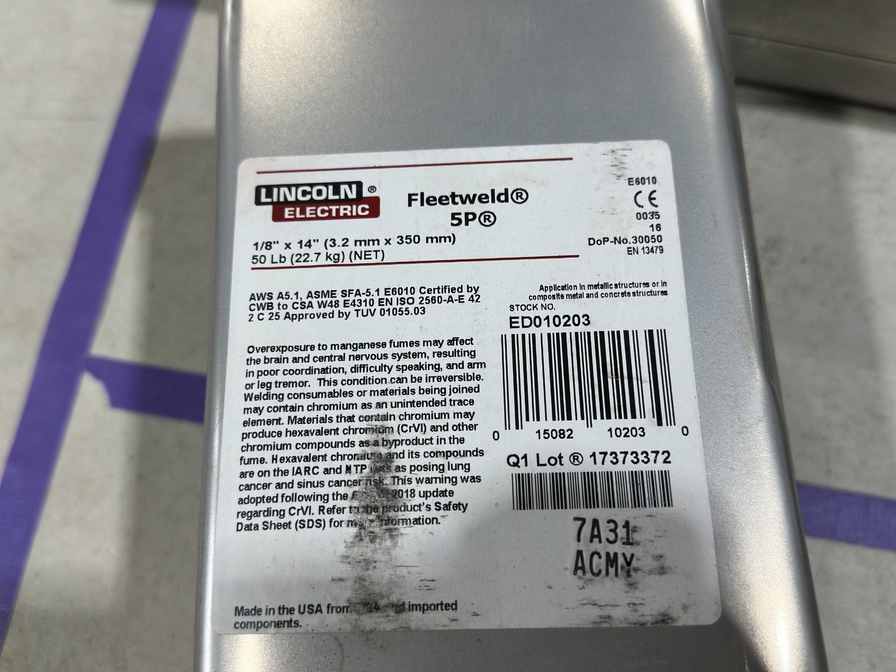 ÉLECTRODES FLEETWELD 5P 1/8"x14" 50LBS LINCOLN ELECTRONIC #E6010