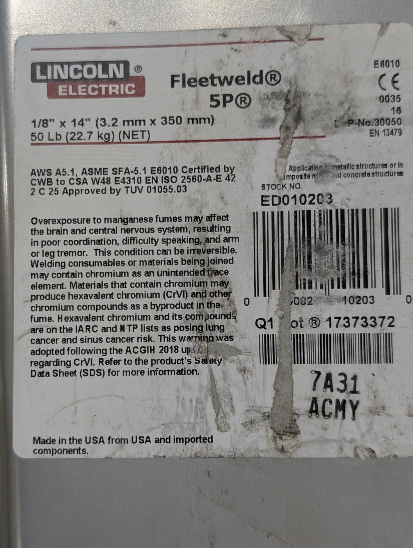 ÉLECTRODES FLEETWELD 5P 1/8 x14   50LBS LINCOLN ELECTRONIC #E6010