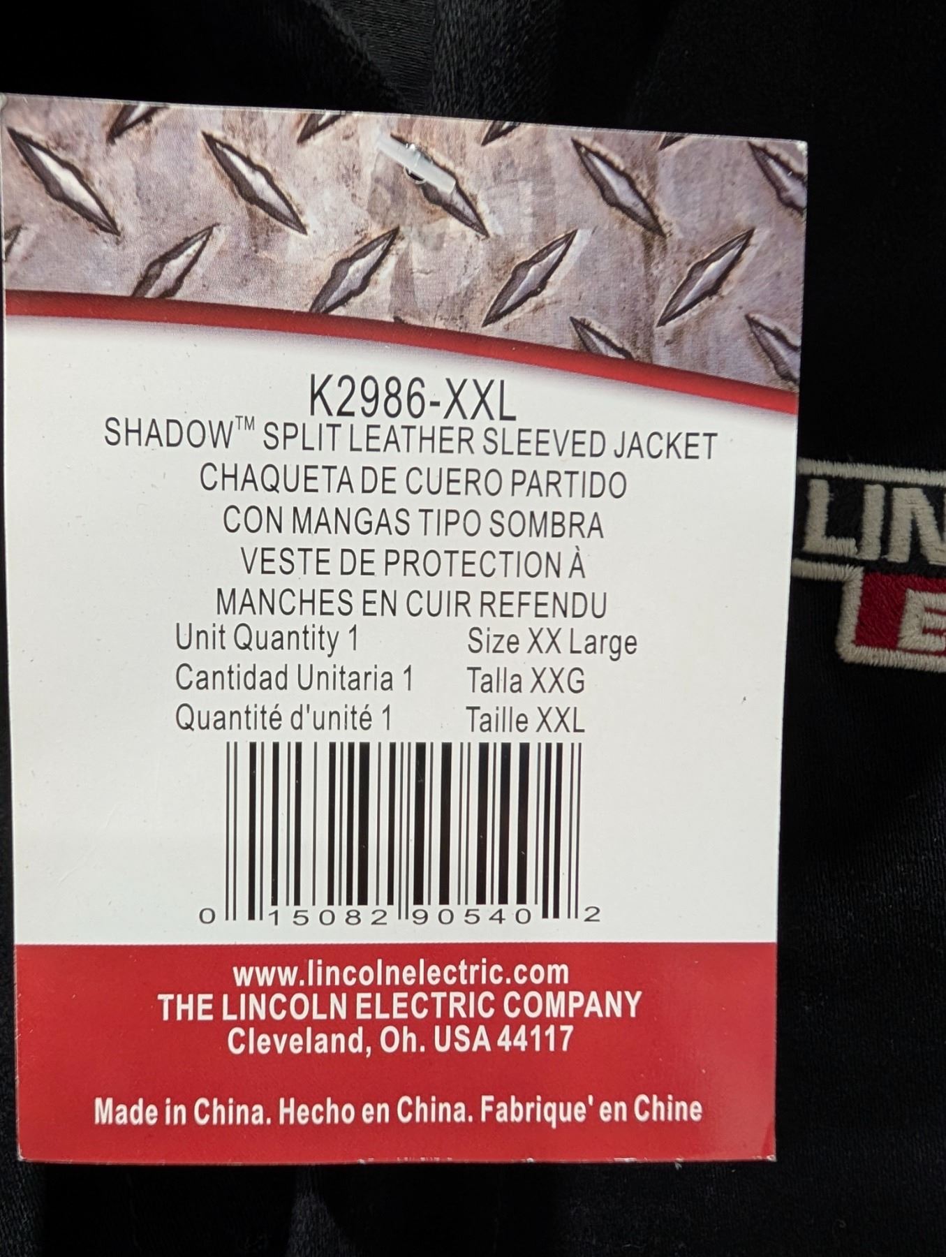 LINCOLN ELECTRIC VESTE DE PROTECTION À MANCHE EN REFENDU gr:2XL val:$325