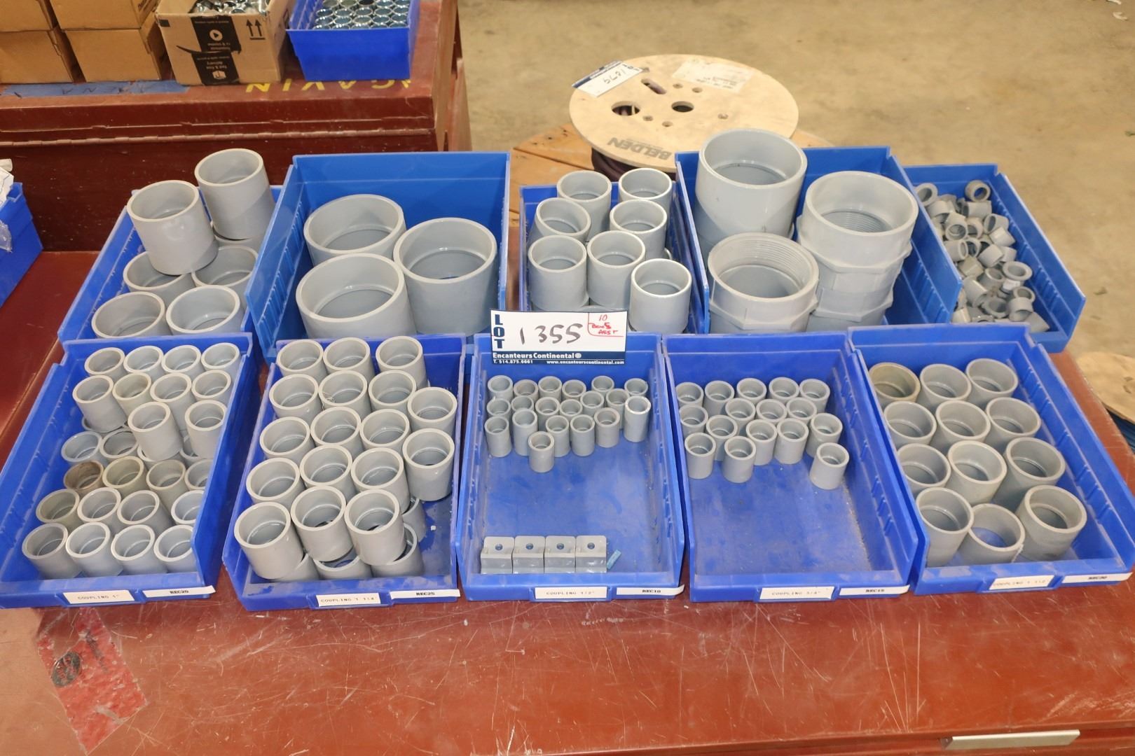 LOT 10 BINS WITH ASST PVC CONNECTORS / COUPLINGS