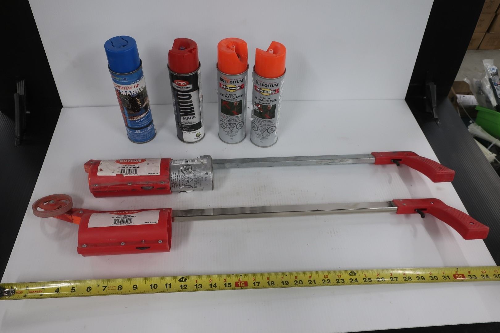 LOT: 2 PAINT MARKING STICKS AND 5 PAINT CANS