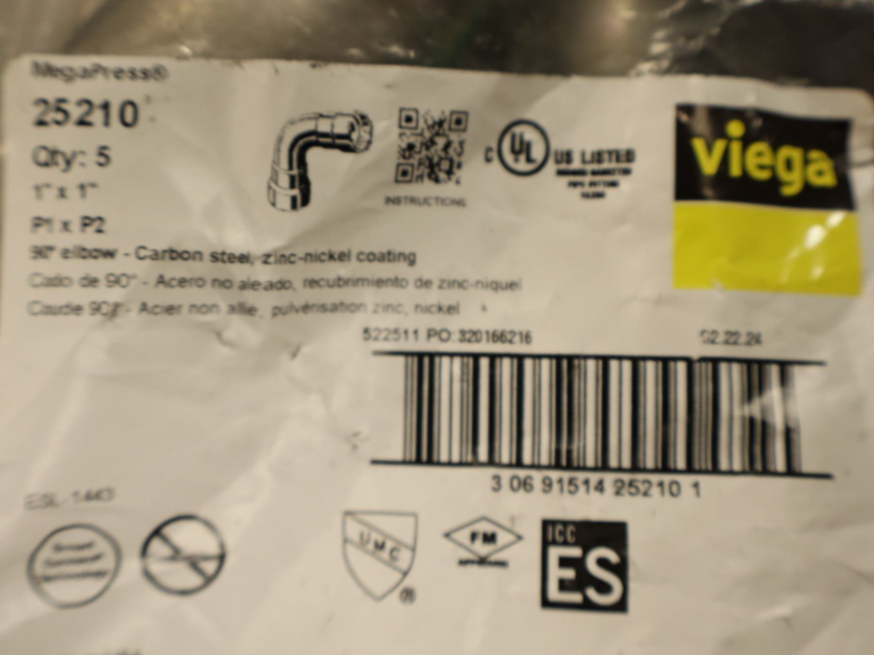 LOT: 20 COU 90DEG 1" VIEGA MEGAPRESS 25210