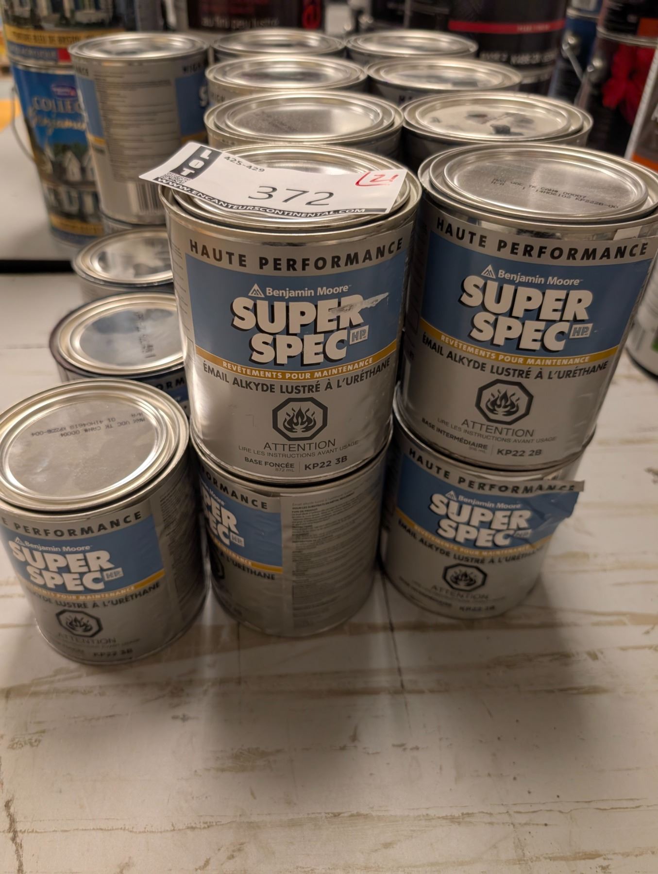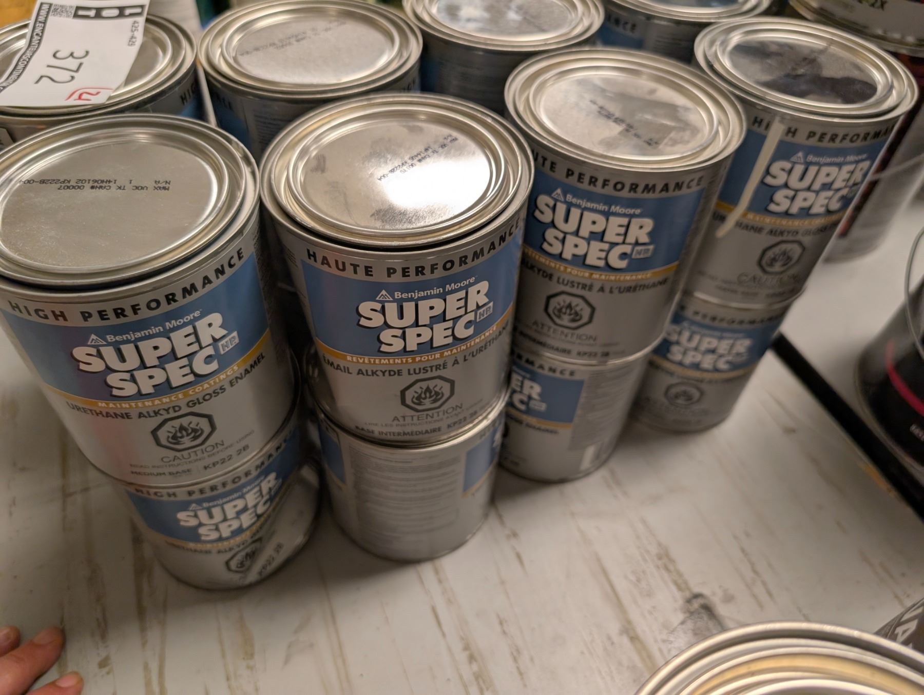 LOT: 21 PEINTURE REVETEMENTS POUR LA MAINTENANCE 950ML (APPROX) BENJAMIN MOORE "SUPER SPEC" ASST