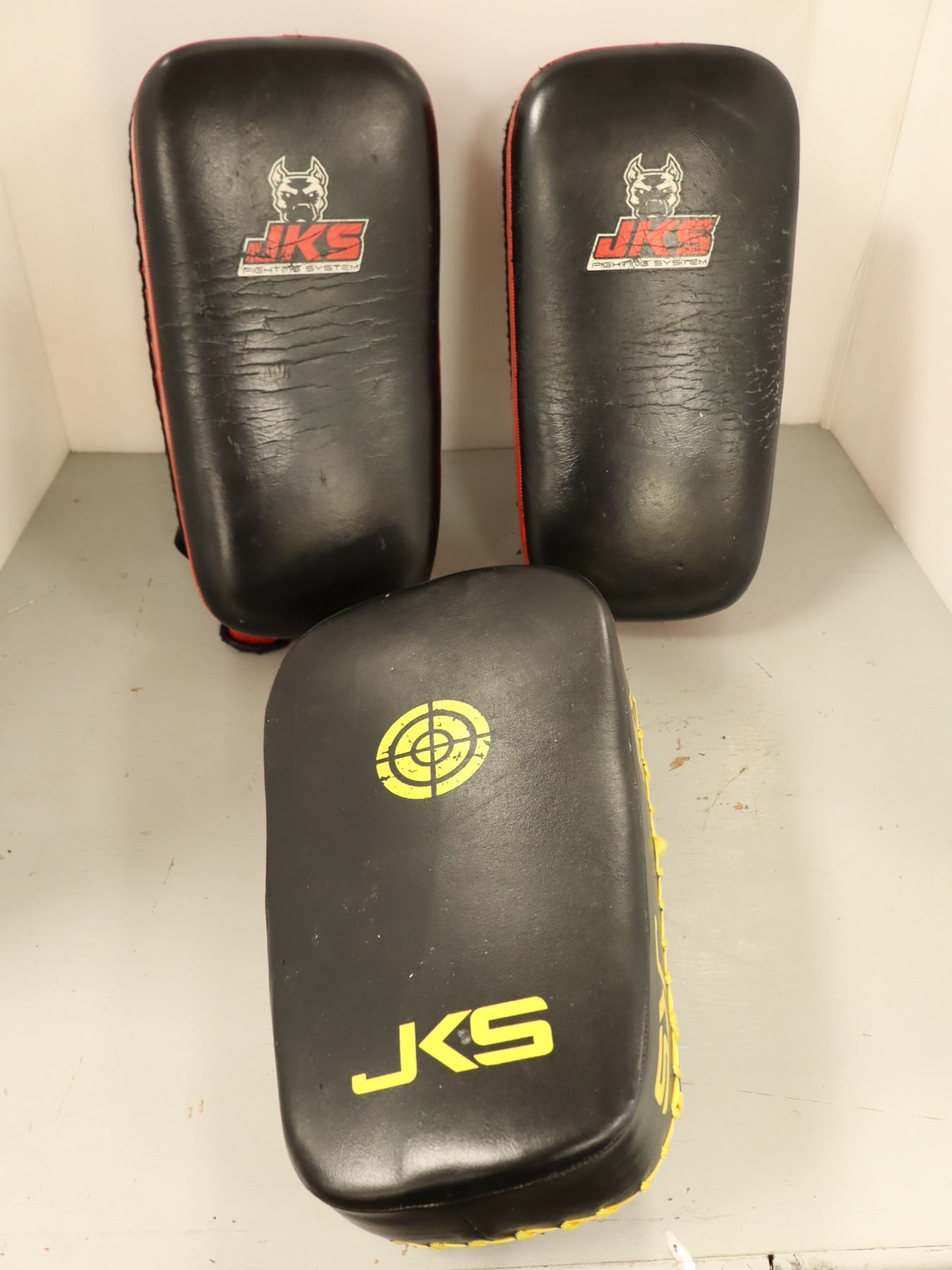 LOT: 3 PADS POUR COUP DE PIED LOGO JKS ASST *USAGÉ*