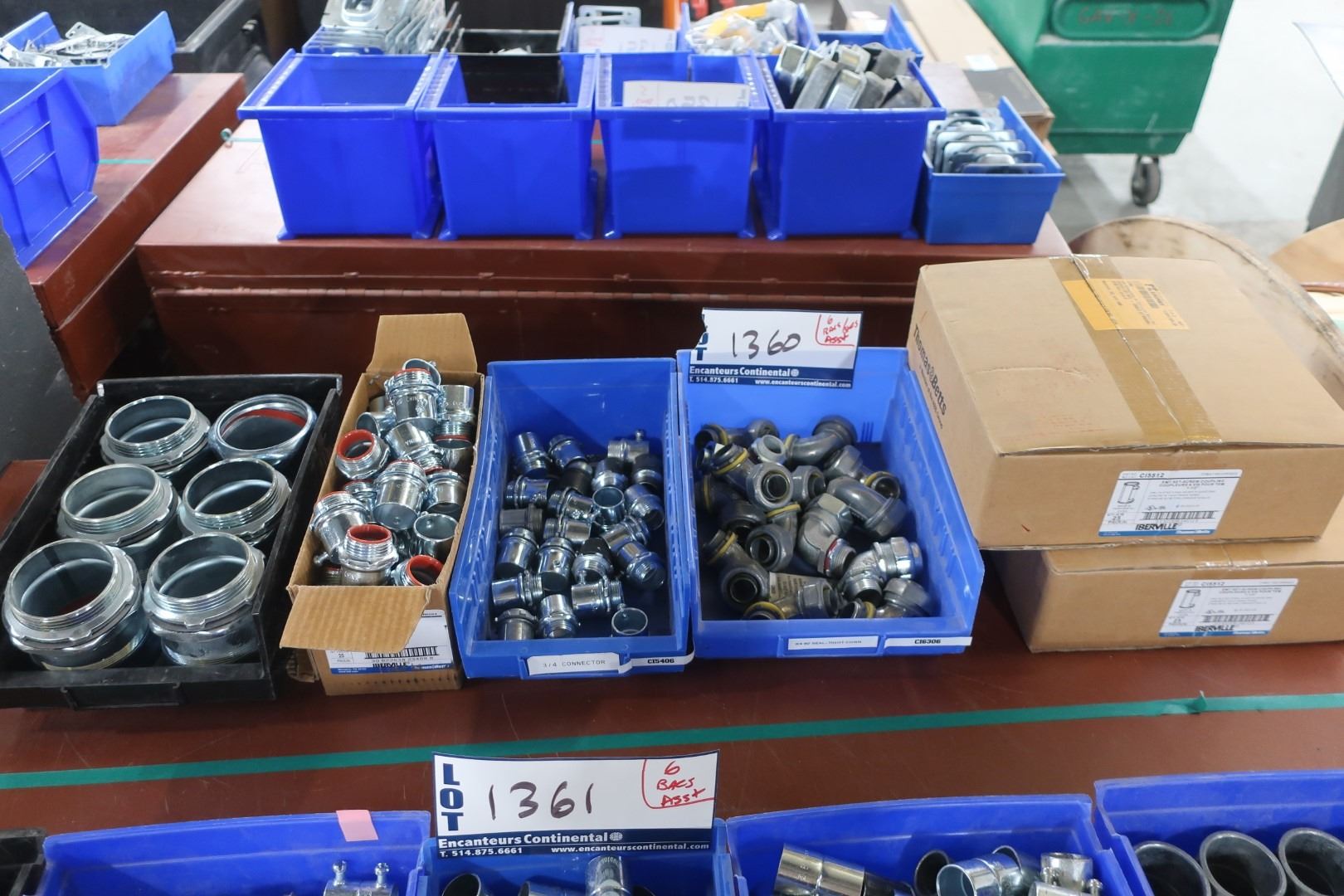 LOT 6 BINS/BOXES OF CONNECTORS / METAL COUPLINGS ASST