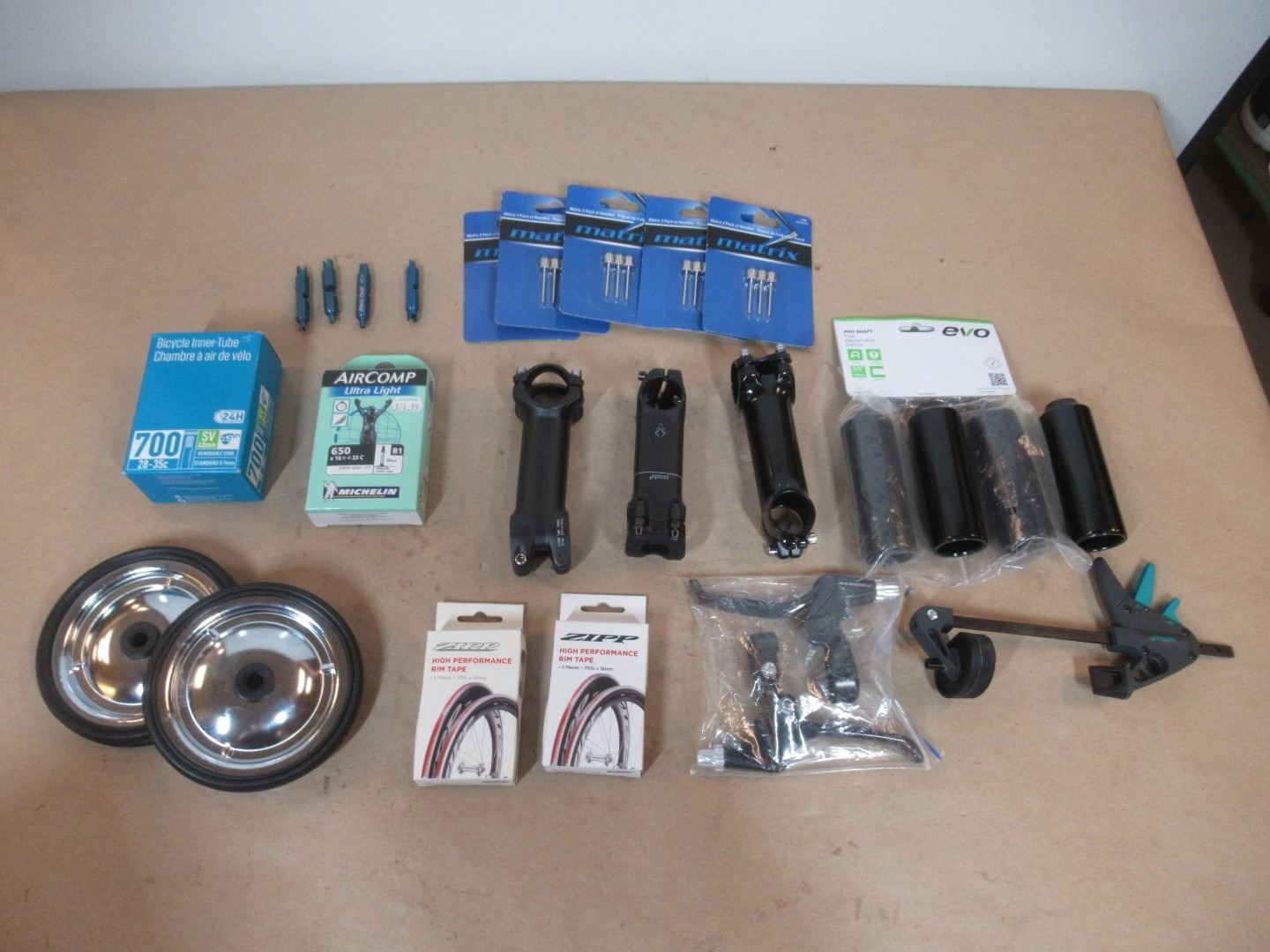 LOT:PIÈCES DE RÉPARATION DE VÉLOS / ACCESSOIRES EN STOCK.