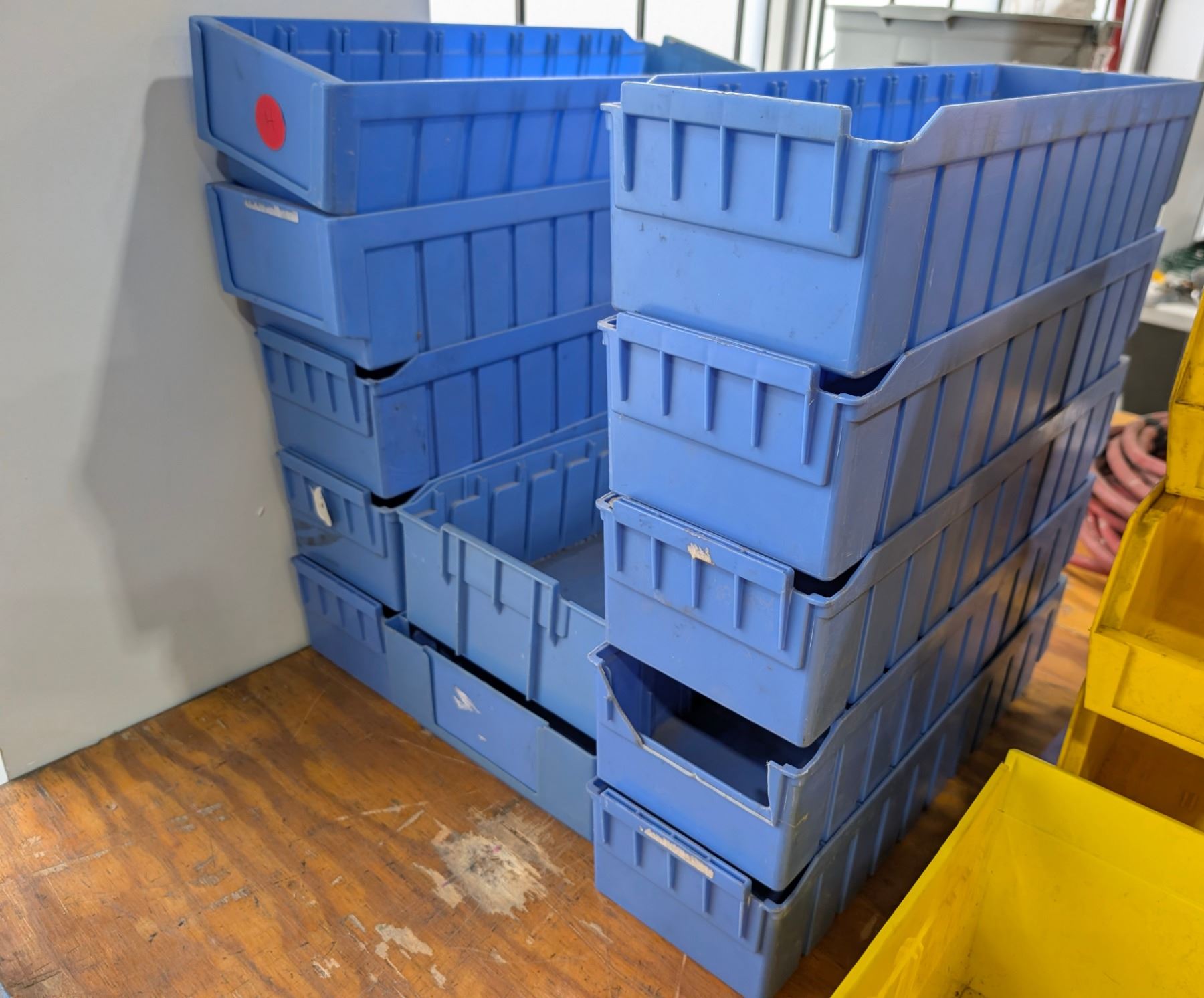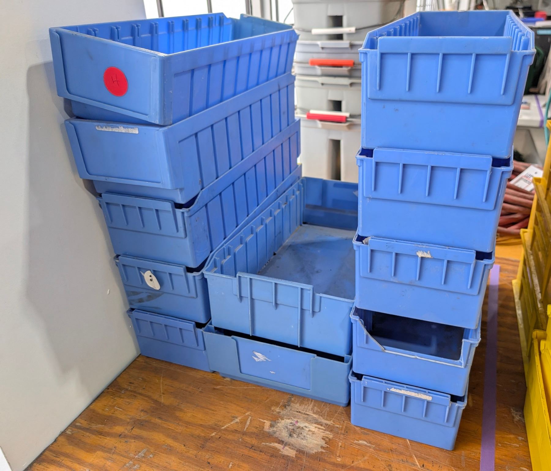 LOT OF 12 ASSORTED BLUE PLASTIC BINS