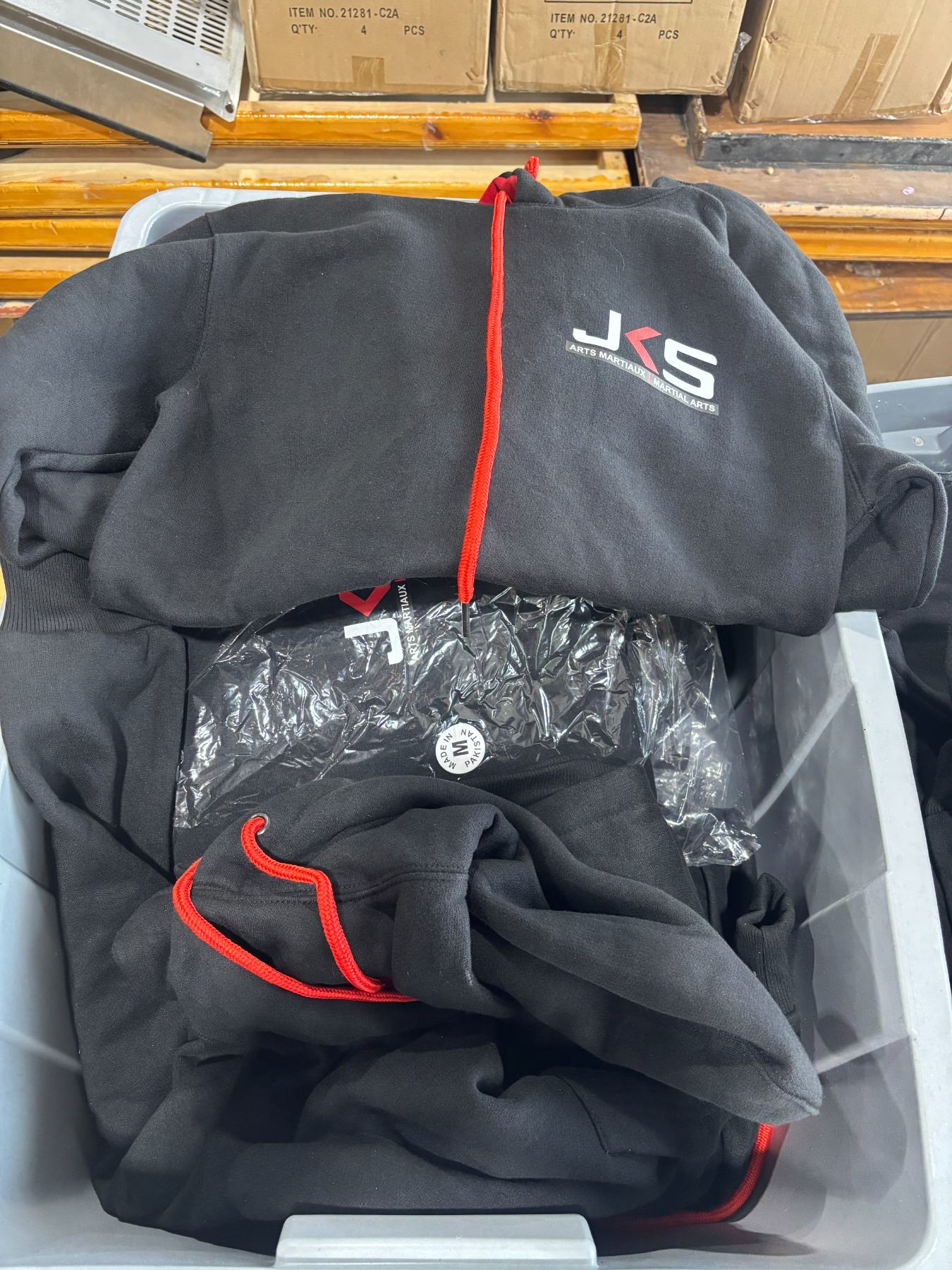 LOT DE 12 CHANDAILS KANGOUROU (HOODIE) DENSE JERSEY LOGO JKS/TEAM MMA gr:MED