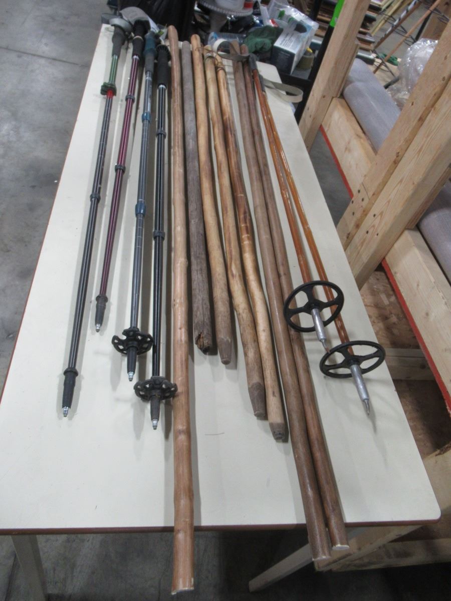 LOT OF 13 SKI POLES& WALKING STICKS ASST