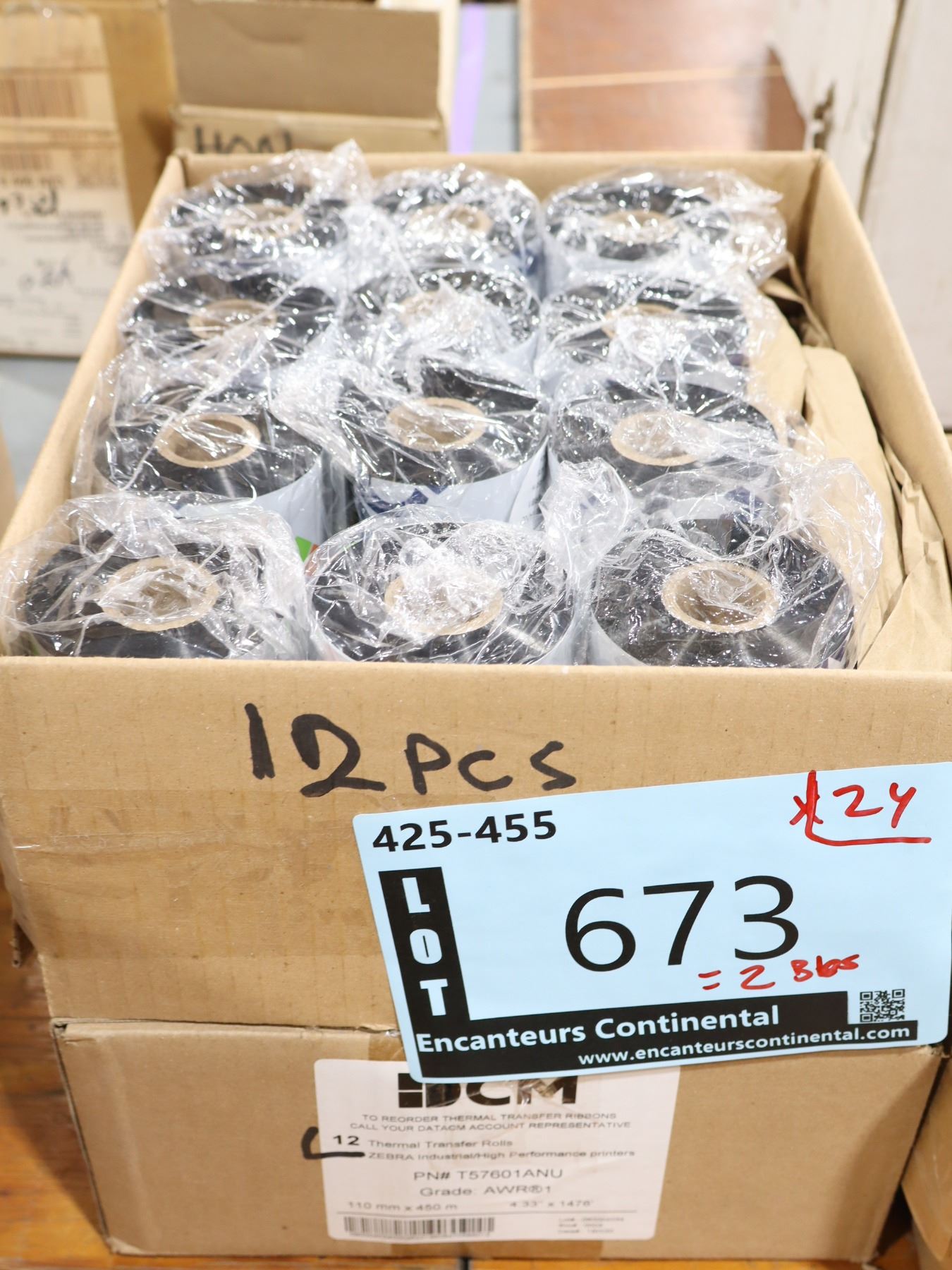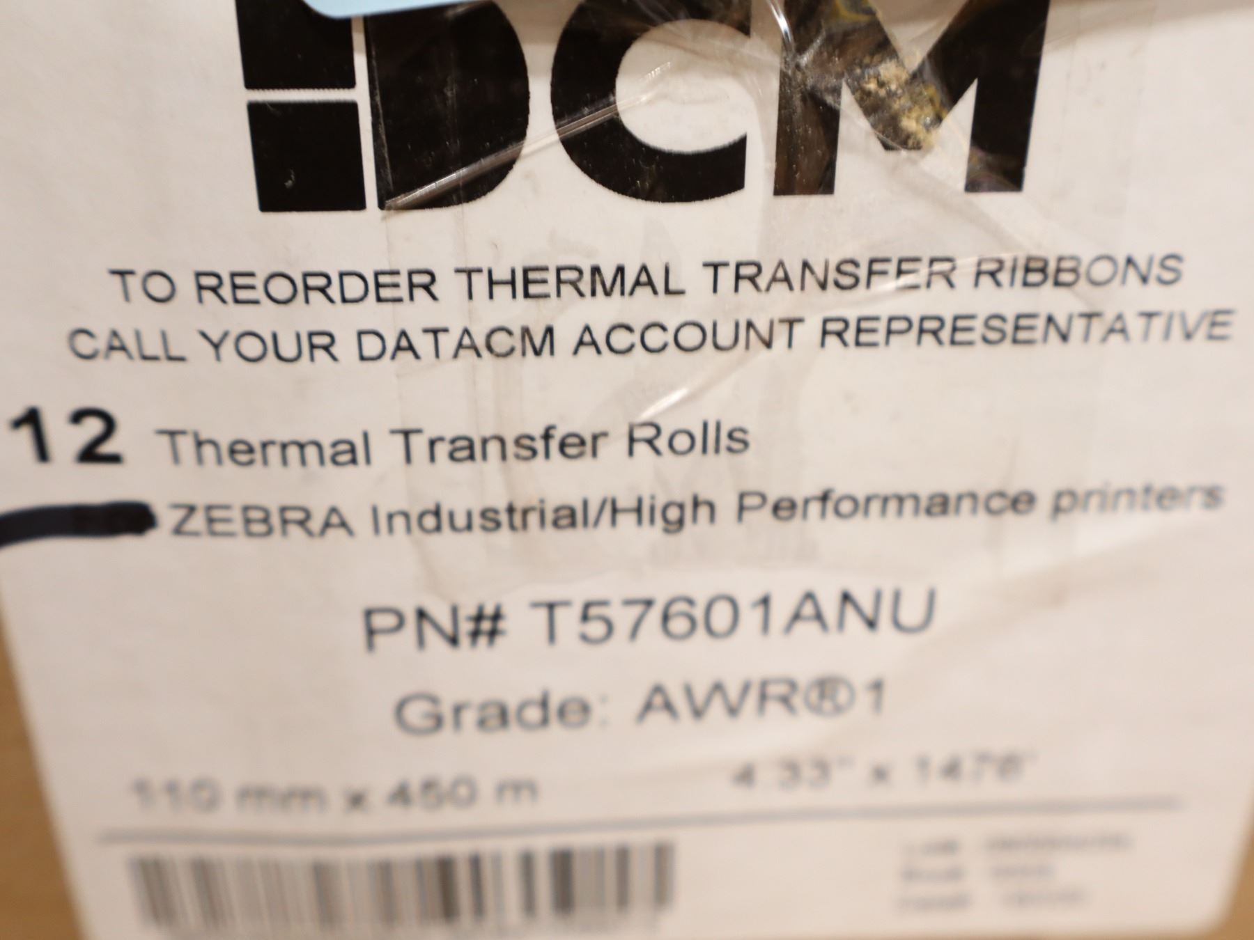 LOT DE 24 RUBANS D'IMPRIMANTE ZEBRA 4.33"x1476'