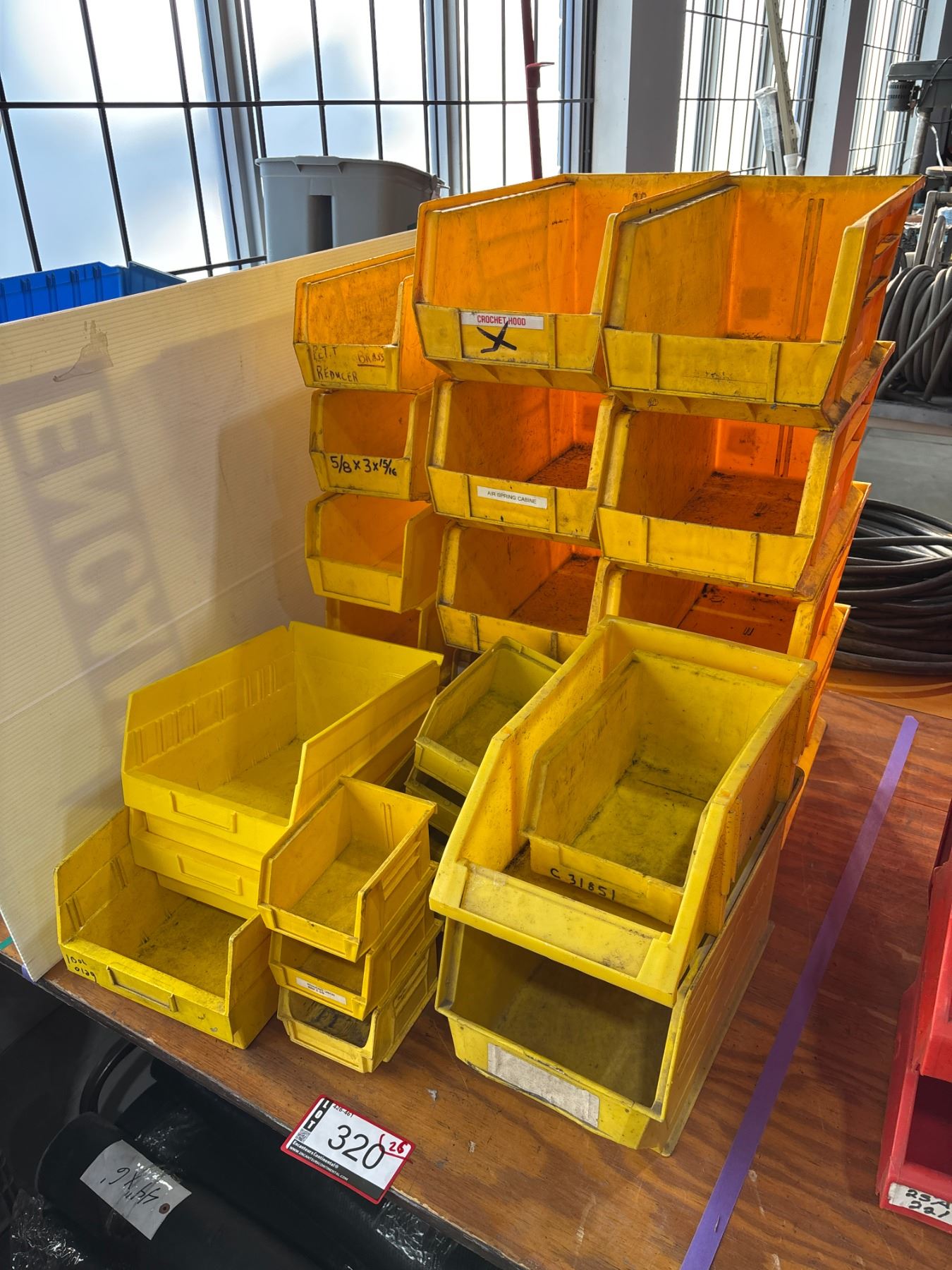 LOT OF 26 ASSORTED YELLOW PLASTIC BINS