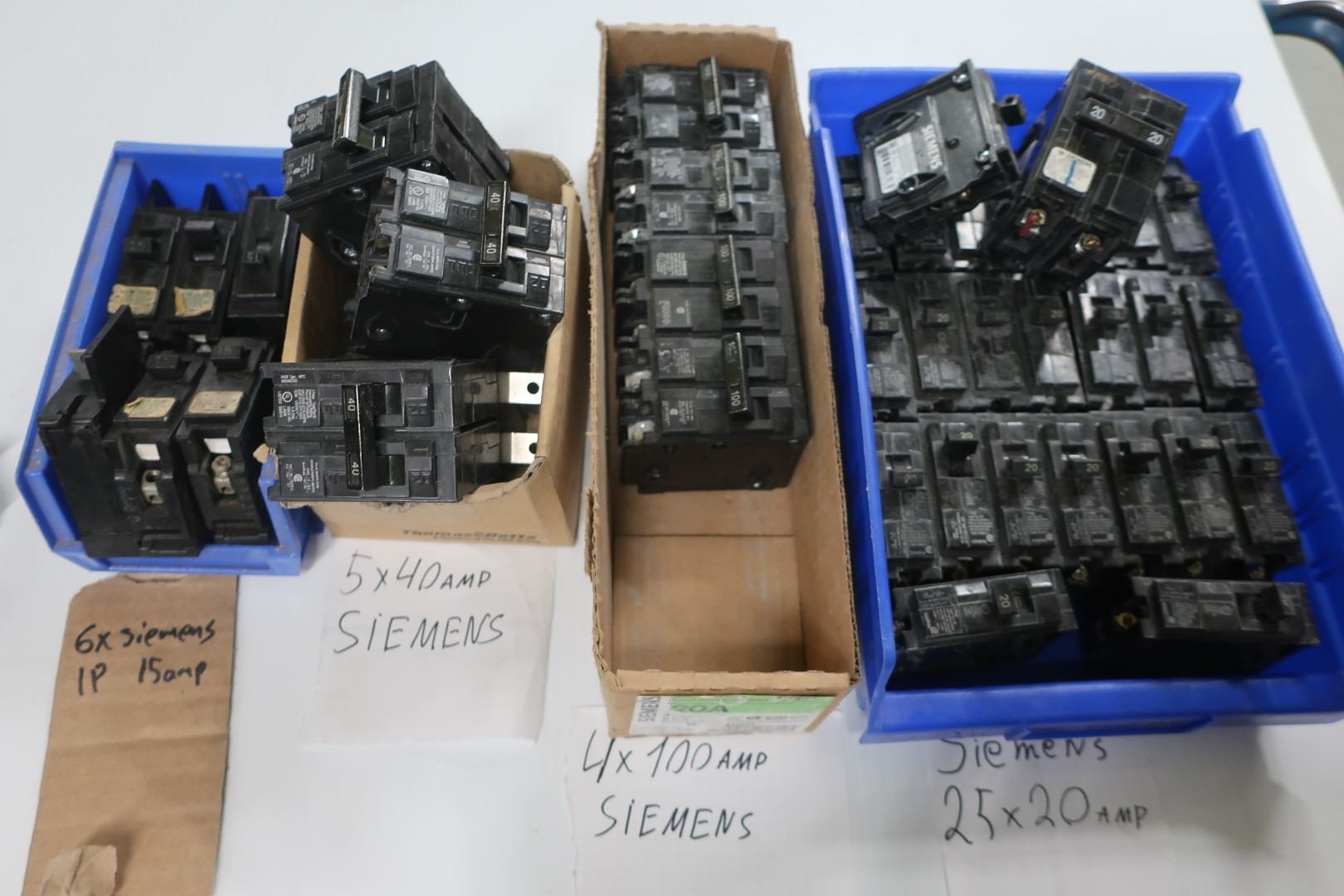 LOT DE 34 DISJONCTEURS SIEMENS 20 À 100 AMP, 1 POLE